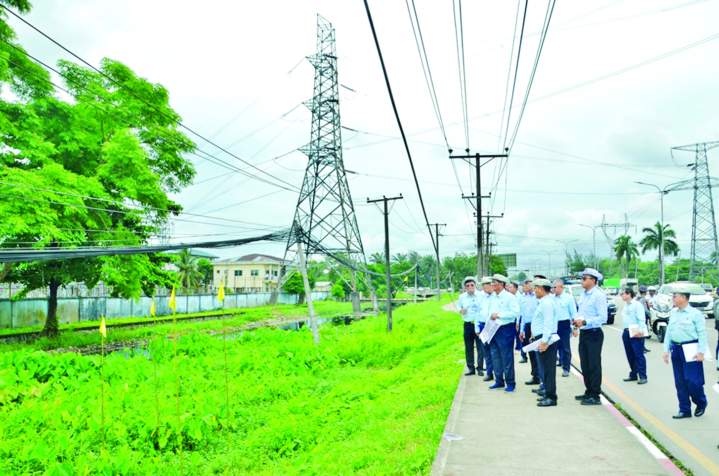 ဇွန် ၂၈ ရက် နံနက်ပိုင်းတွင် ပြည်ထောင်စုဝန်ကြီးနှင့်အဖွဲ့သည် လှိုင်သာယာမြို့နယ်သို့ရောက်ရှိပြီး ရန်ကုန်-ပုသိမ်လမ်းမကြီးနှင့် ရန်ကုန်-ညောင်တုန်းလမ်းမကြီး အဆင့်မြှင့်တင်ခြင်းလုပ်ငန်းများ ဆောင်ရွက်ရာတွင် လမ်းနယ်နှင့်မလွတ်ကင်းသော လျှပ်စစ်ဓာတ်အားလိုင်းတိုင်များ ရွှေ့ပြောင်းတည်ဆောက်မည့် အခြေအနေများကို ကြည့်ရှုစစ်ဆေးရာ တာဝန်ရှိသူများက လမ်းတိုးချဲ့ဆောင်ရွက်ခြင်းကြောင့် မလွတ်ကင်းသော ၃၃ ကေဗွီ ဓာတ်အားလိုင်းများနှင့် ၁၁ ကေဗွီဓာတ်အားလိုင်းများကို အဝေးပြေးလမ်းမကြီးများနှင့် လွတ်ကင်းရာသို့ ပြောင်းရွှေ့တည်ဆောက်သွားမည့် အစီအမံများ၊ လက်ရှိဓာတ်အားလိုင်း ပြောင်းရွှေ့တည်ဆောက်ခြင်း လုပ်ငန်းများဆောင်ရွက်နေမှု၊ သတ်မှတ်ရက်အတွင်း အချိန်မီပြီးစီးရေးနှင့် ဓာတ်အားပြန်လည်ပို့လွှတ်နိုင်ရေး ဆောင်ရွက်သွားမည့်အစီအမံများနှင့်ပတ်သက်၍ ရှင်းလင်းတင်ပြကြသည်။
