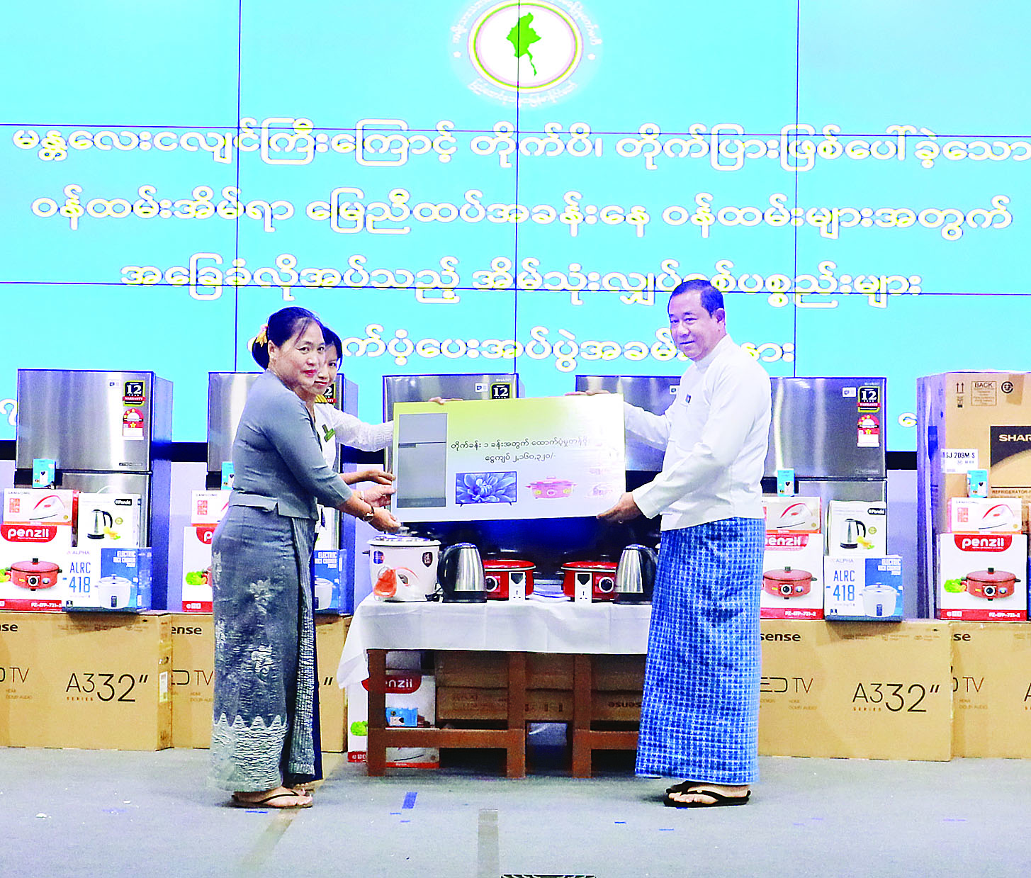 ယနေ့အခမ်းအနားတွင် ပြည်ထောင်စုနယ်မြေ နေပြည်တော်ရှိ တိုက်ပိ၊ တိုက်ပြားဖြစ်ပေါ်ခဲ့သည့် ဝန်ကြီးဌာန/အဖွဲ့အစည်း ၂၅ ခုရှိ တိုက်အရေအတွက် ၁၂၄ လုံးမှ မြေညီထပ် ၄၉၉ ခန်းနေ ဝန်ထမ်းမိသားစုများကို မီးဖိုချောင်သုံးနှင့် အိမ်သုံးလျှပ်စစ်ပစ္စည်း ခြောက်မျိုးထောက်ပံ့ရန် အမျိုးသားသဘာဝဘေးအန္တရာယ်ဆိုင်ရာစီမံခန့်ခွဲမှုရန်ပုံငွေမှ ထောက်ပံ့ငွေကျပ်သိန်း ၁၀၇၈၀ ကျော် ကျခံထောက်ပံ့ပေးခဲ့ခြင်းဖြစ်ကြောင်း သိရသည်။