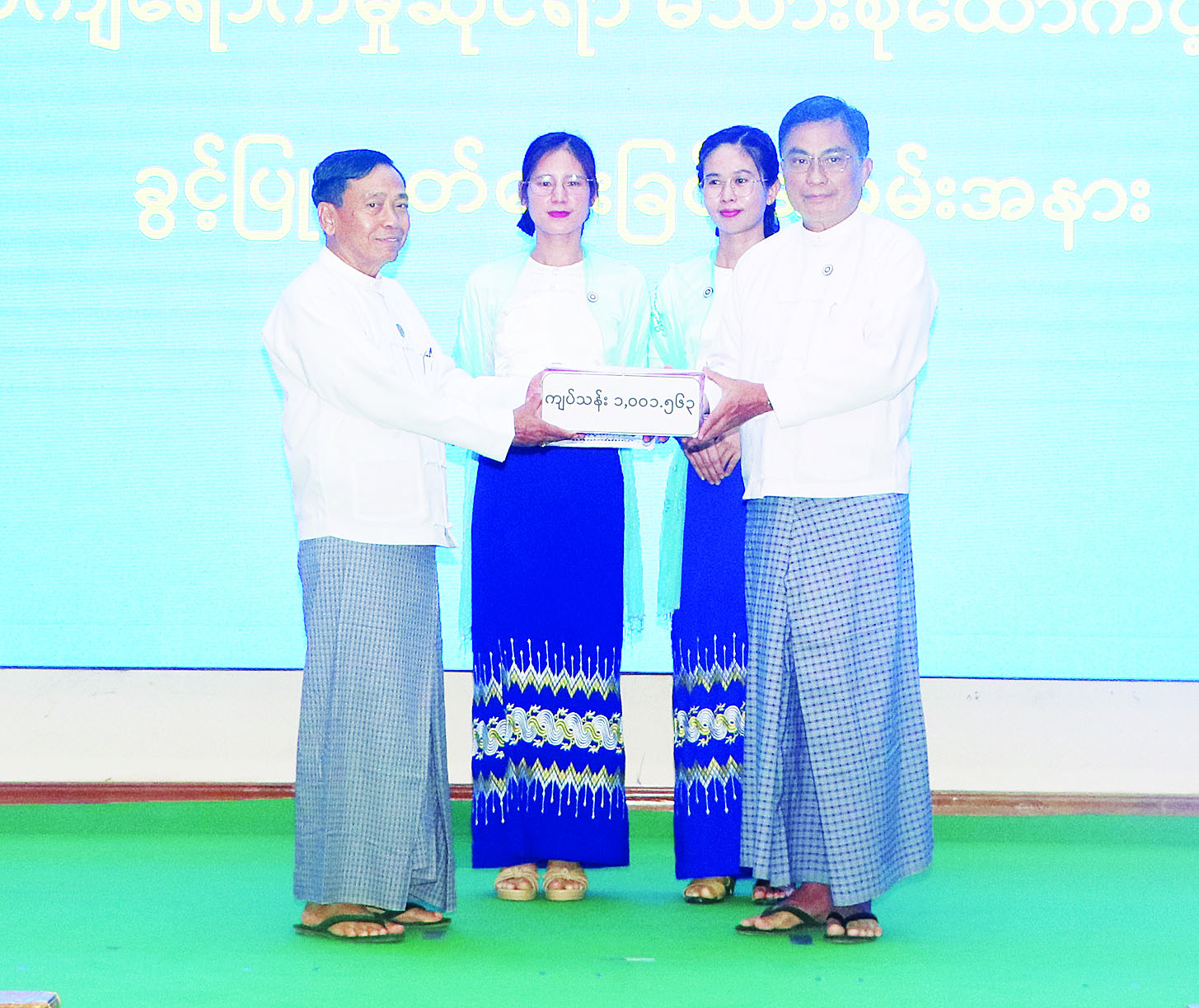 ထို့နောက် ပြည်ထောင်စုဝန်ကြီးက နေပြည်တော်ကောင်စီဥက္ကဋ္ဌထံသို့ ပြည်ထောင်စုနယ်မြေ နေပြည်တော်အတွင်းရှိ အလုပ်ဌာနများမှ လျှောက်ထားလာသည့် အာမခံအလုပ်သမား ၁၁၂၀၃ ဦးတို့အတွက် သဘာဝဘေးအန္တရာယ်ကျရောက်မှုဆိုင်ရာ မိသားစုထောက်ပံ့မှုအကျိုးခံစားခွင့် ၄၀ ရာနှုန်း ငွေကျပ် ၁၀၀၁ ဒသမ ၅၆၃ သန်းကို လွှဲပြောင်းပေးအပ်သည်။