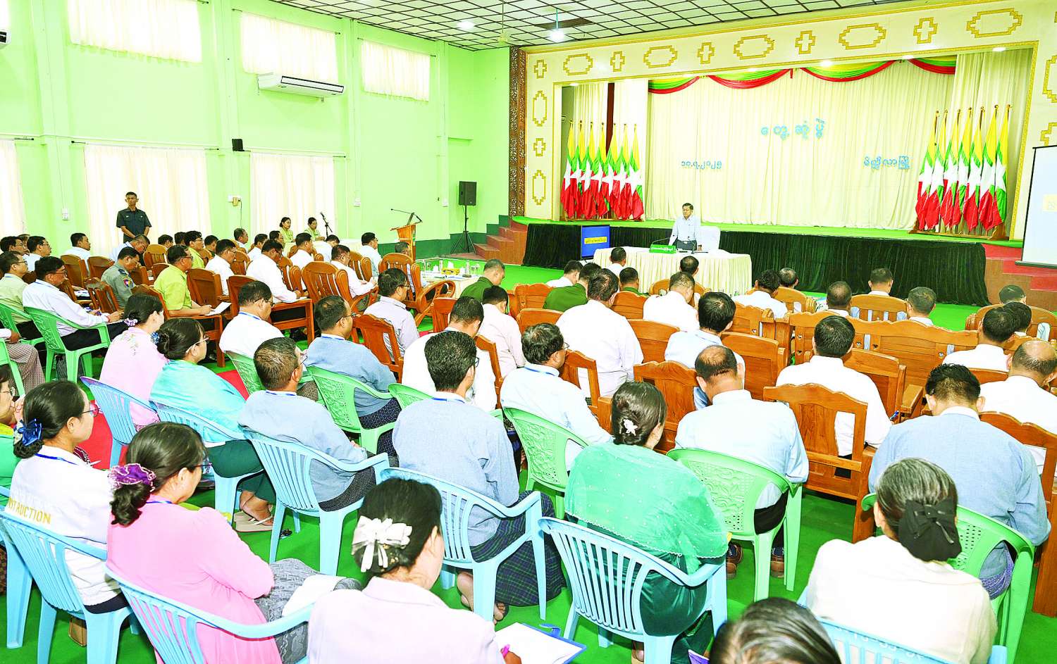 နိုင်ငံ့စီးပွားအားကောင်းစေရေးအတွက် ကုန်ထုတ်လုပ်မှုမြှင့်တင်ရမည်ဖြစ်ပြီး ကုန်ထုတ်လုပ်မှု အားကောင်းရန်အတွက် နည်းပညာလိုအပ်ချက်များရှိကြောင်း၊ စိုက်ပျိုးရေးလုပ်ငန်းတွင် “မျိုး၊ မြေ၊ ရေ၊ နည်း” စသည့် နည်းလမ်းလေးသွယ်သည် အရေးကြီးကြောင်း၊ အဆိုပါနည်းလမ်းလေးသွယ် အတိုင်း စနစ်တကျစိုက်ပျိုးဆောင်ရွက်မှသာ တစ်ဧကချင်းအထွက်နှုန်းများ တိုးတက်လာပြီး စိုက်ပျိုးရေးထွက်ကုန်များ ပိုမိုတိုးတက်ထုတ်လုပ်လာနိုင်မည်ဖြစ်ကြောင်း၊ တွက်ချက်မှုများအရ ၂၀၂၃- ၂၀၂၄ ဘဏ္ဍာရေးနှစ်အတွင်း မိတ္ထီလာမြို့နယ်အတွင်း မိုးစပါးစိုက်ပျိုးထွက်ရှိမှုသည် ပန်းတိုင်ရည်မှန်းချက် မပြည့်မီခဲ့ဘဲ ပျမ်းမျှတစ်ဧကလျှင် ၆၂ ဒသမ ၆၅ တင်းသာထွက်ရှိခဲ့သဖြင့် ၃၇ ဒသမ ၃၅ တင်း လျော့နည်းခဲ့ကြောင်း၊ အဆိုပါအချိန်တွင် စပါးတစ်တင်း၏ ကာလပေါက်ဈေးမှာ ကျပ် ၂၂၀၀၀ ရှိသဖြင့် ပန်းတိုင်ရည်မှန်းချက် မပြည့်မီသောကြောင့် ငွေကျပ် ၁၀ ဒသမ ၃၆၉ ဘီလီယံလျော့နည်းဆုံးရှုံခဲ့ရကြောင်း၊ မိတ္ထီလာခရိုင်တစ်ခုလုံးတွင် မိုးစပါးစိုက်ပျိုးမှု ပန်းတိုင်ရည်မှန်းချက် မပြည့်မီခဲ့သဖြင့် ငွေကျပ် ၇၉ ဒသမ ၇၉၁ ဘီလီယံဝင် ငွေလျော့နည်းခဲ့ရ ကြောင်း၊ အလားတူ နွေစပါးထွက်ရှိမှုတွင်လည်း ပန်းတိုင်ရည်မှန်းချက်မပြည့်မီမှုကြောင့် ၄ ဒသမ ၆ ဘီလီယံဝင်ငွေလျော့နည်းခဲ့ကြောင်း၊ မြေပဲစိုက်ပျိုးမှုတွင် ပန်းတိုင်ရည်မှန်းချက် မပြည့်မီမှုကြောင့် ငွေကျပ် ၄၆ ဒသမ ၈၉၅ ဘီလီယံ လျော့နည်းခဲ့ကြောင်း၊ နှမ်းစိုက်ပျိုးမှုတွင် ပန်းတိုင်ရည်မှန်းချက် ပြည့်မီမှုမရှိခြင်းကြောင့် ၅၈၀ ဒသမ ၄၈ ဘီလီယံလျော့နည်းခဲ့ကြောင်း၊ နေကြာ၊ ပဲတီစိမ်းစသည့် သီးနှံများအပါအဝင် မိတ္ထီလာခရိုင်အတွင်း တစ်ဧကပန်းတိုင်ရည်မှန်းချက်အထွက်နှုန်း မပြည့်မီမှုကြောင့် စိုက်ပျိုးရေးလုပ်ငန်းတွင် စုစုပေါင်း ငွေကျပ် ၉၈၀ ဘီလီယံခန့် လျော့နည်းဆုံးရှုံးခဲ့ရကြောင်း၊ အဆိုပါအချက်ကိုကြည့်ခြင်းအားဖြင့် စိုက်ပျိုးရေးလုပ်ငန်းများအား တစ်ဧကပန်းတိုင်ရည်မှန်းချက်များအတိုင်း ထွက်ရှိအောင် ဆောင်ရွက်နိုင်မည်ဆိုပါက ဒေသစီးပွားရေးကို များစွာအထောက်အကူပြုနိုင်သည်ကို တွေ့ရှိရသဖြင့် အားလုံးဝိုင်းဝန်းကြိုးပမ်းဆောင်ရွက်ကြရန်လိုကြောင်း။