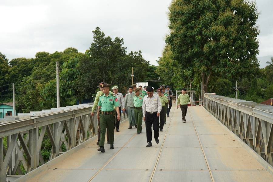 ဦးစွာ တိုင်းမှူးနှင့်အဖွဲ့ဝင်များအား တံတားဦးစီးဌာနမှ တာဝန်ရှိသူတစ်ဦးက တံတားသစ်စီမံကိန်းအား တစ်ဆင့်ချင်းအလိုက် အကောင်အထည်ဖော်ဆောင်ရွက်နေမှုအခြေအနေ၊ Bored Pile (၁၀)ခု စိုက်ထူသွားမည့်နေရာနှင့် ဆောင်ရွက်မည့်အခြေအနေများကို ရှင်းလင်းတင်ပြရာ တိုင်းမှူးက လိုအပ်သည်များမှာကြားသည်။ ထို့နောက် တိုင်းမှူးနှင့်အဖွဲ့ဝင်များသည် လက်ရှိအသုံးပြုလျက်ရှိသော ဘေလီတံတား၏ ကြံ့ခိုင်မှုအခြေအနေများကို တာဝန်ရှိသူများနှင့်အတူလိုက်လံစစ်ဆေးကြည့်ရှုကာ လိုအပ်သည်များ ပေါင်းစပ်ညှိနှိုင်းပေးသည်။
