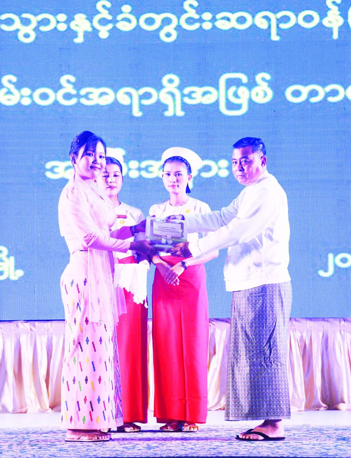 ယင်းနောက် အခမ်းအနားကို စတင်ကျင်းပပြုလုပ်ရာ ဆေးတက္ကသိုလ် - ၁ (ရန်ကုန်) မှ ကျောင်းသူများက “မင်္ဂလာပါ” တေးသရုပ်ဖော်သီချင်းဖြင့် ဖျော်ဖြေတင်ဆက်ကြသည်။