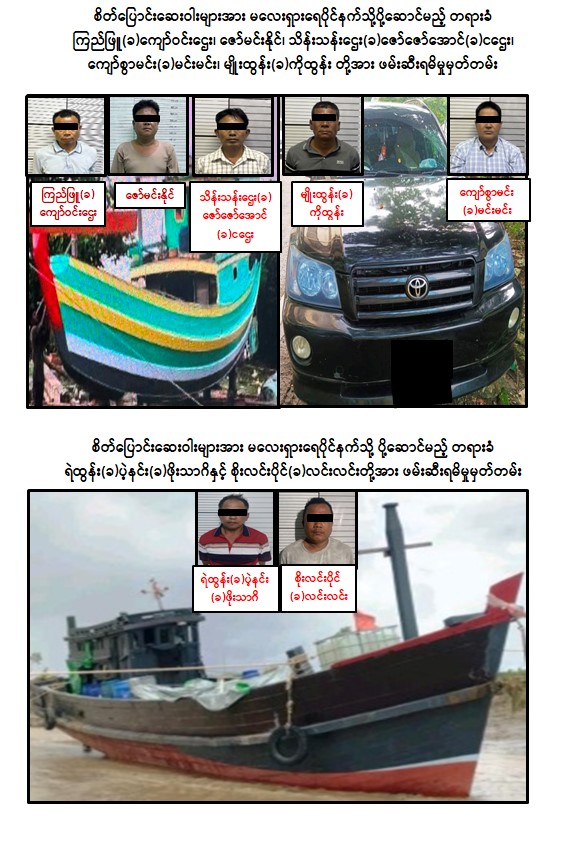ယင်းနေ့ ညနေ ၄ နာရီခွဲအချိန်တွင် စိတ်ပြောင်းဆေးဝါးများအား ပင်လယ်ရေကြောင်းဖြင့် မလေးရှား ရေပိုင်နက်သို့ပို့ဆောင်သူ စိုးလင်းပိုင်(ခ)လင်းလင်းအား ပြည်မြို့၊ နဝဒေးတံတားတွင်လည်းကောင်း၊ ဇူလိုင်လ ၁၆ ရက်နေ့ နံနက် ၁၀ နာရီခွဲအချိန် ရန်ကုန်မြစ်ဝမှ မလေးရှားရေပိုင်နက်သို့ပို့ဆောင်သူ စက်လှေပိုင်ရှင် ရဲထွန်း(ခ) ပဲ့နင်း(ခ)ဖိုးသာဂိအား ပုသိမ်ကြီးမြို့နယ်တွင်လည်းကောင်း ဖမ်းဆီးရမိခဲ့ပြီး ရဲထွန်းမှာလည်း မူးယစ်အမှုဖြင့် အလိုရှိတရားခံပြေးတစ်ဦးဖြစ်ကြောင်း။