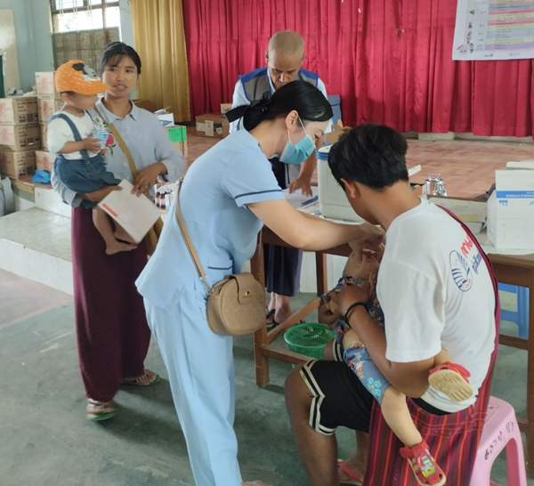 ထို့ပြင် နိုင်ငံတော်ဝန်ကြီးချုပ်၏ ဒုတိယလမ်းညွှန်ချက်အနေဖြင့် ကျန်းမာရေးဆိုင်ရာကိစ္စဖြစ်ပြီး အကြမ်းဖက်သောင်းကျန်းသူများဖျက်ဆီးခဲ့သည့် (၂၅)ခုတင်ဆံ့ နောင်ချိုမြို့နယ်ပြည်သူ့ဆေးရုံအား မူလအခြေနေသို့ ပြန်လည်ရောက်ရှိအောင် အမြန်ဆုံးပြန်လည်ပြုပြင်ပြီး ကျန်းမာရေးစောင့်ရှောက်မှုများ ပုံမှန်အတိုင်း ပြန်လည်ဆောင်ရွက်ပေးရန်ဖြစ်သည့်အတွက် အဆိုပါဆေးရုံအား ပြန်လည်ပြုပြင်နေစဉ်ကာလအတွင်း မြနန်းတော်ဝင်မင်္ဂလာခန်းမ၌ တပ်မတော်နှင့်ကျန်းမာရေးဝန်ကြီးဌာနမှ ပူးပေါင်း၍ ယာယီဆေးရုံဖွင့်လှစ်ပြီး ဆေးကုသပေးခြင်းများ ဆောင်ရွက်ပေးလျက်ရှိရာ ယနေ့တွင် ဒေသခံတိုင်းရင်းသား ပြည်သူ ၁၈၂ ဦးတို့ကို သွေးလွန်တုပ်ကွေးရောဂါ၊ အထွေထွေရောဂါတို့နှင့်ပတ်သက်၍ ကျန်းမာရေးစစ်ဆေးကုသပေးခြင်းများနှင့် ကာကွယ်ဆေးထိုးပေးခြင်းများ ဆောင်ရွက်ပေးသည်။