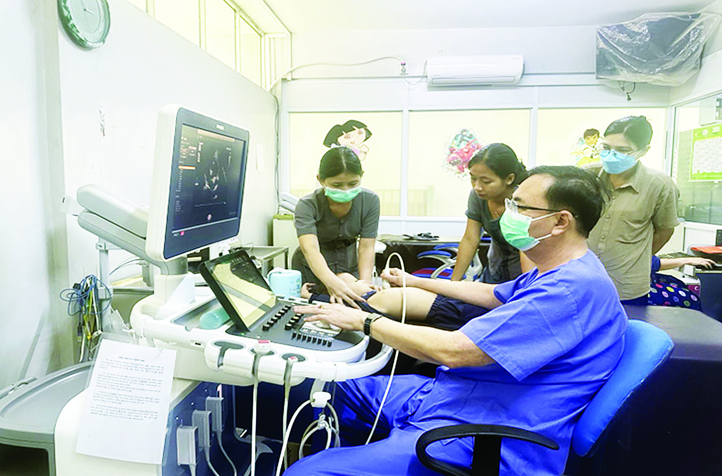 ထိုသို့ ဆောင်ရွက်ရာတွင် ခုတင်-၅၅၀ ဆံ့ ကလေးဆေးရုံကြီး (ရန်ကုန်)၌ ၂၀၂၅ ခုနှစ် ဇူလိုင် ၃ ရက်မှ ၄ ရက်အထိ ဗီယက်နမ်နိုင်ငံ ဟိုချီမင်းမြို့ Children’s Hospital No. 1 မှ ကလေးနှလုံးအထူးကု ဆရာဝန် Dr. Do Nguyen Tin သည် မြန်မာနိုင်ငံမှ ပါမောက္ခ ဒေါက်တာခင်မောင်ဦး၊ ပါမောက္ခ (ကလေးနှလုံးဆေးကု) ခေါင်းဆောင်သော ကလေးနှလုံးအထူးကု ဆရာဝန်ကြီးများနှင့်အတူ မွေးရာပါ နှလုံးရောဂါ ကလေးလူနာ ၁၇ ဦးအား ခွဲစိတ်စရာမလိုဘဲ နှလုံးနှင့် သွေးကြောအထူးကုသစက် (Cardiac Catheterization Lab) ၌ ကျန်းမာရေးဝန်ကြီးဌာနမှ ထောက်ပံ့သော အဆို့(Device)များ၊ ဆေးနှင့် ဆေးပစ္စည်းများ အသုံးပြု၍ ကုသခြင်းနှင့် ဘောလုံးဖြင့်ချဲ့၍ ကုသခြင်းများကို ပူးပေါင်းဆောင်ရွက်ခဲ့သည်။