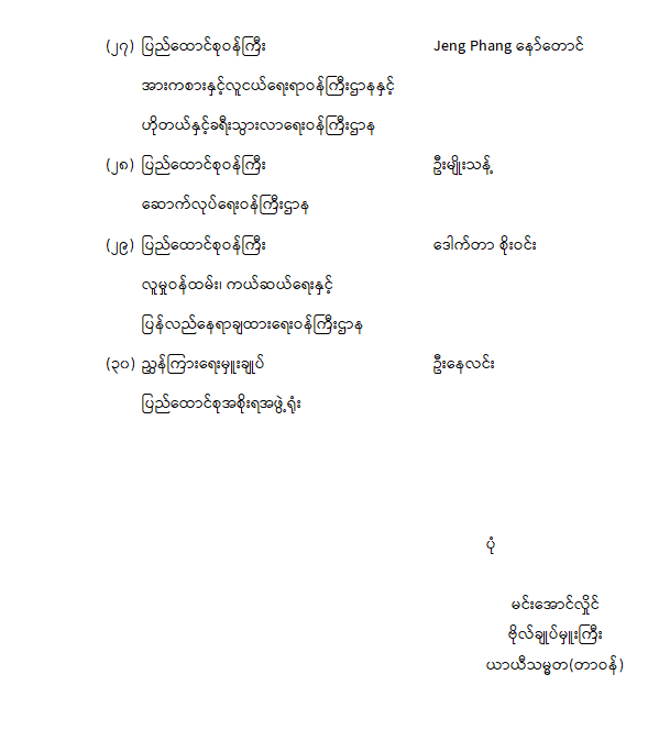 ဦးစီးဌာနနှင့် လုပ်ငန်းများ၏ ကြေညာချက်များ