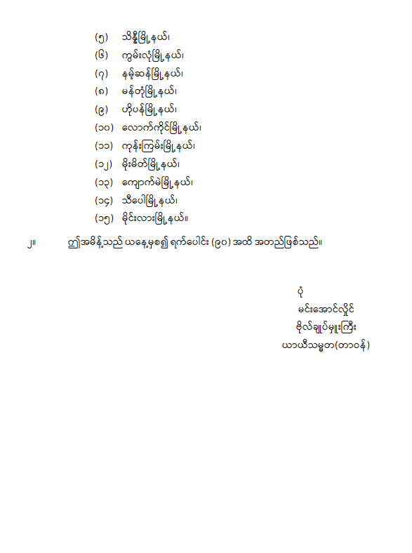 ဝန်ကြီးဌာန ကြေညာချက်များ