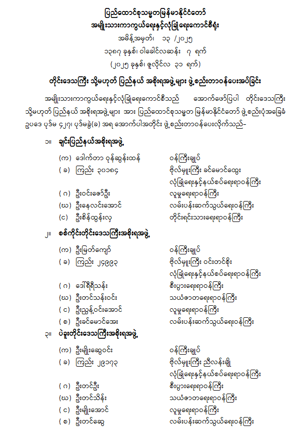 တိုင်းဒေသကြီး သို့မဟုတ် ပြည်နယ်အစိုးရအဖွဲ့များ ဖွဲ့စည်းတာဝန်ပေးအပ်ခြင်း