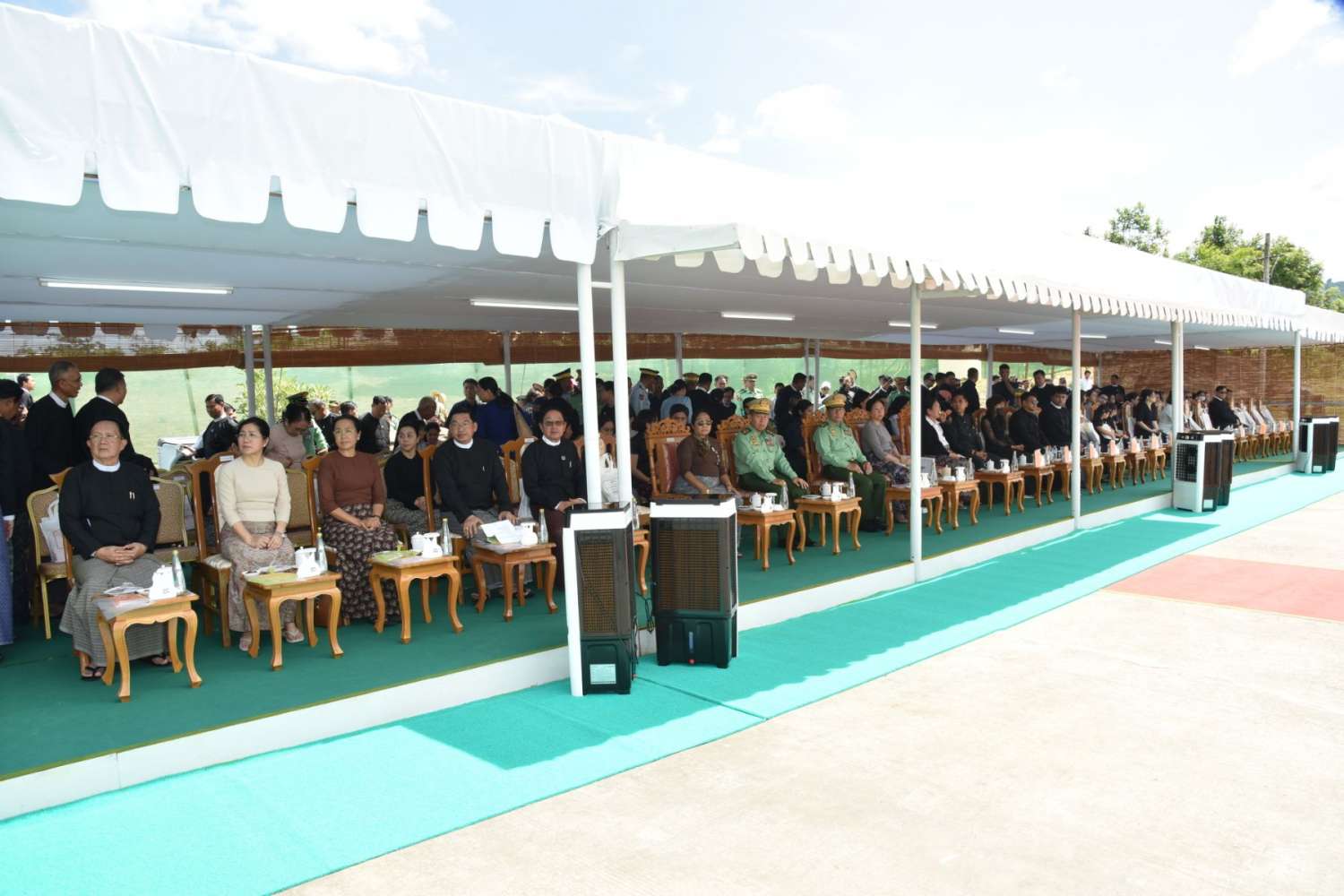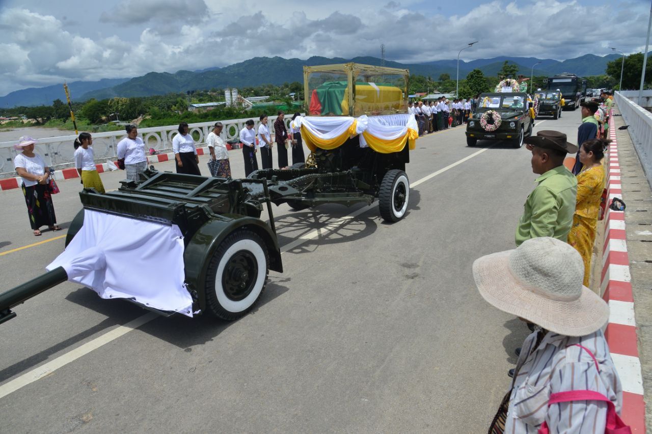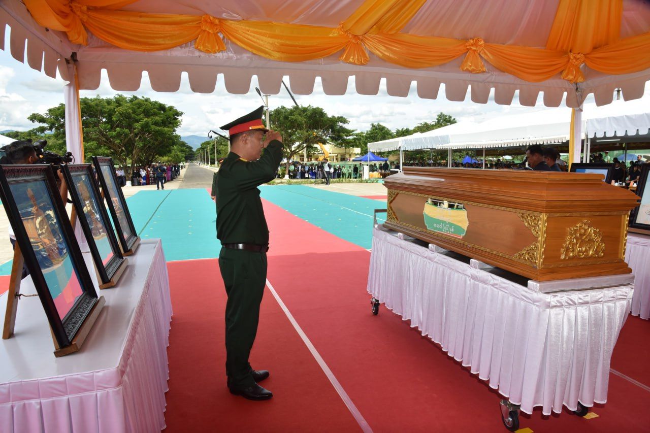 ယင်းနောက် နိုင်ငံတော်လုံခြုံရေးနှင့် အေးချမ်းသာယာရေးကော်မရှင်ဥက္ကဋ္ဌ၊ ကော်မရှင်ဒုတိယဥက္ကဋ္ဌနှင့် ပြည်ထောင်စုအဆင့်ပုဂ္ဂိုလ်များ၊ ကာကွယ်ရေးဦးစီးချုပ်ရုံးမှ အဆင့်မြင့်တပ်မတော်အရာရှိကြီးများက နေရာယူကြပြီး တပ်မတော်ဂုဏ်ပြု သေနတ်ပစ်အဖွဲ့က ဂုဏ်ပြုစစ်ရေးပြအစီအစဉ်အတိုင်းဆောင်ရွက်ကာ သေနတ်မြေစိုက်ဦးခိုက်အလေးပြုကြပြီး သေနတ်မြှောက်အလေးပြုကြသည်။