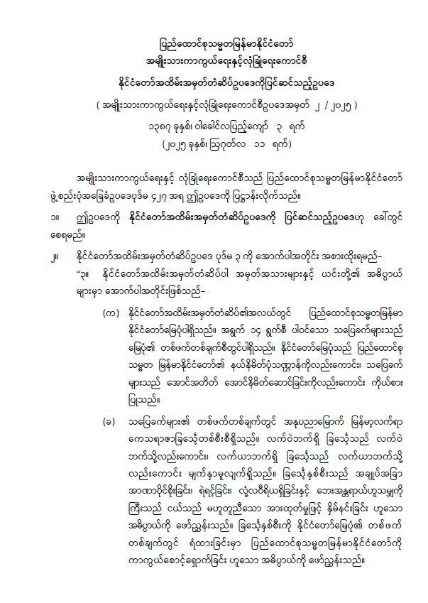 ပြည်ထောင်စုသမ္မတမြန်မာနိုင်ငံတော် အမျိုးသားကာကွယ်ရေးနှင့် လုံခြုံရေးကောင်စီ နိုင်ငံတော်အထိမ်းအမှတ်တံဆိပ်ဥပဒေကို ပြင်ဆင်သည့်ဥပဒေ 08/11/2025