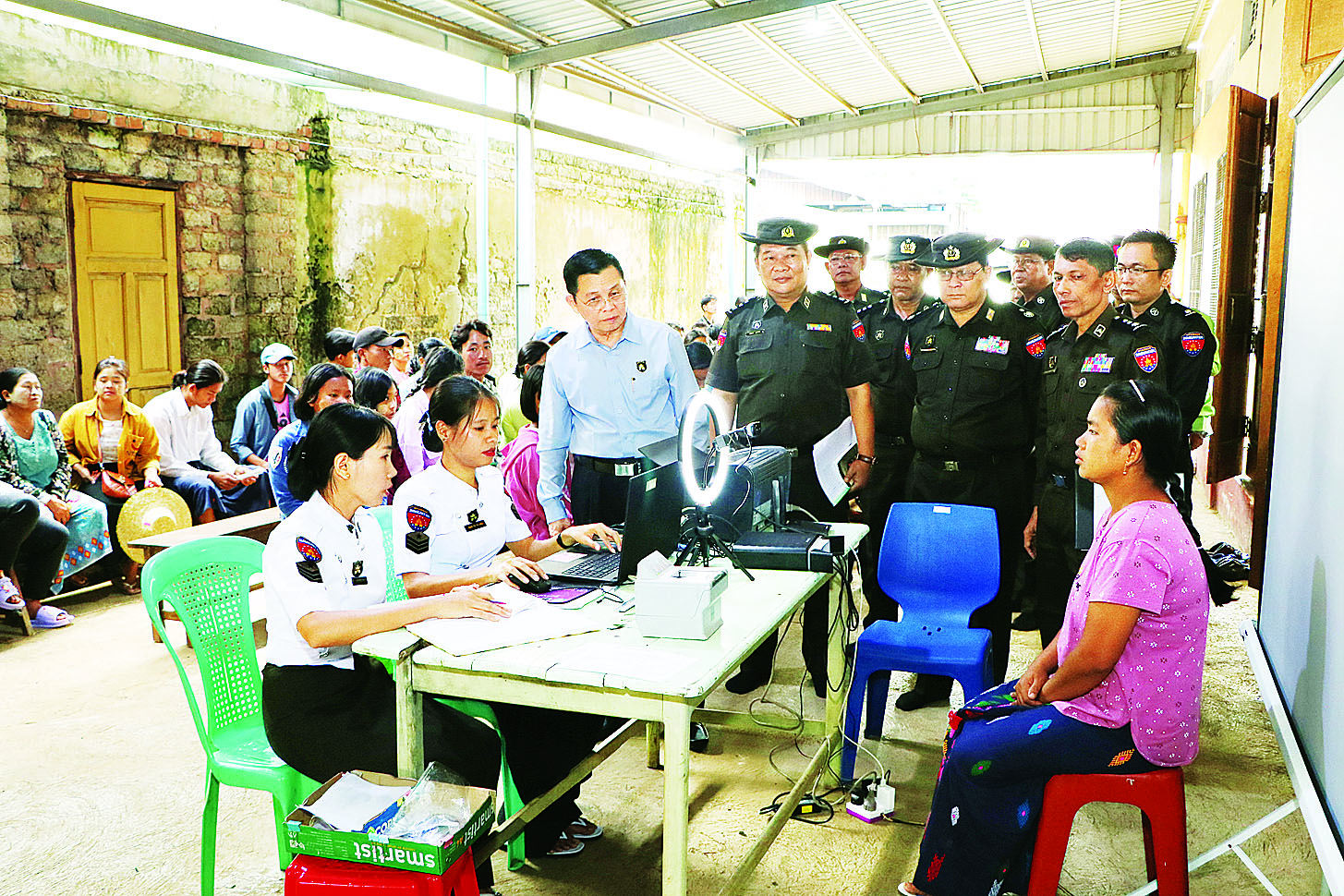 ဆက်လက်၍ နိုင်ငံသားကတ် ရရှိပြီးသူများအား Biographic/Biometric ကောက်ယူကာ Unique ID နံပါတ်ထုတ်ပေးနေမှုအခြေအနေများကို လှည့်လည်ကြည့်ရှုအားပေးကာ အိမ်ထောင်စုလူဦးရေစာရင်းနှင့် နိုင်ငံသားကတ်လာရောက်ဆောင်ရွက်ကြသည့် ဒေသခံပြည်သူများအား ရင်းရင်းနှီးနှီး နှုတ်ဆက်သည်။