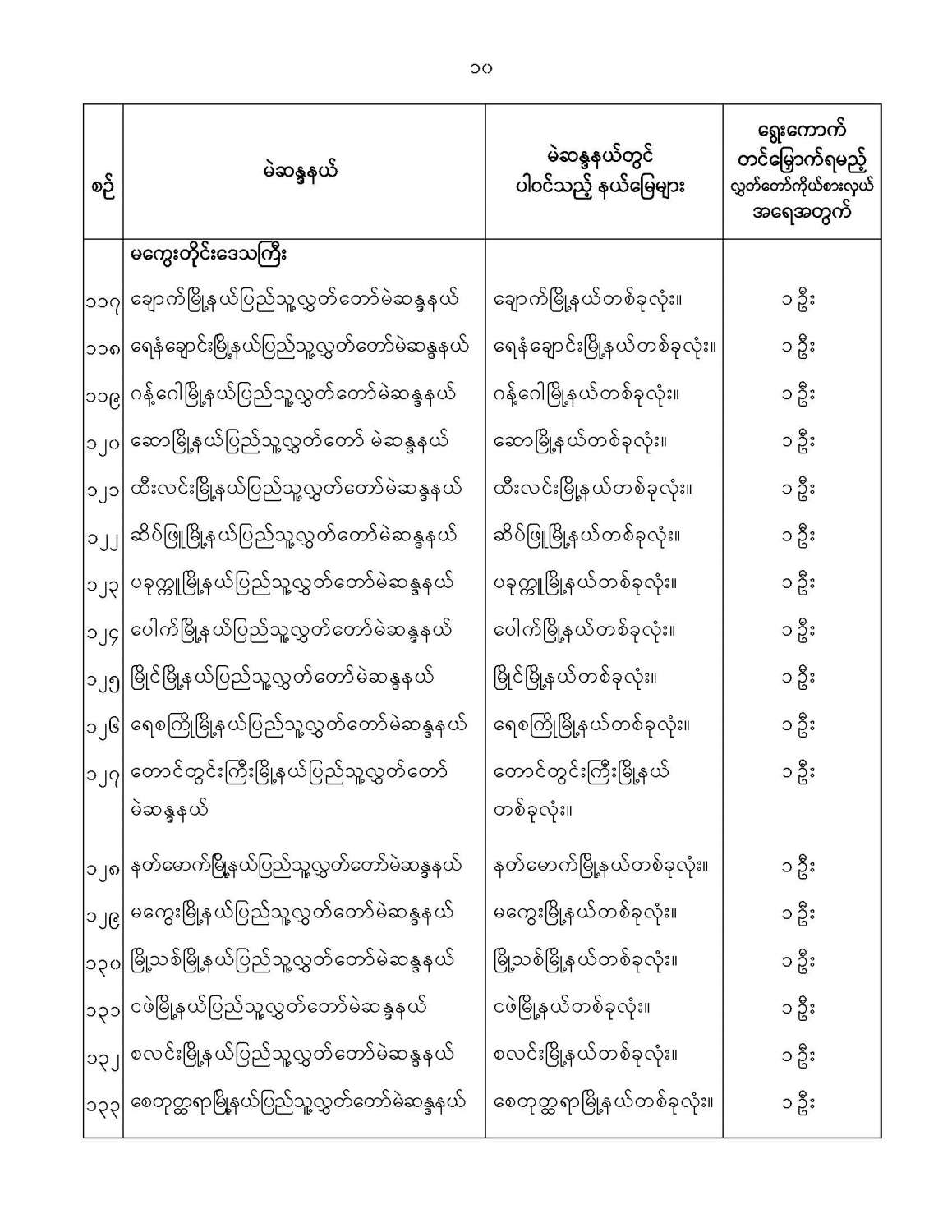 ဝန်ကြီးဌာန ကြေညာချက်များ