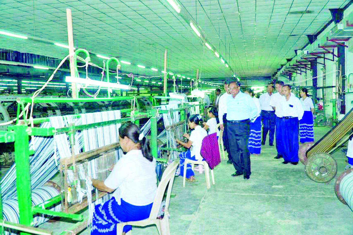 ထို့နောက် ပြည်ထောင်စုဝန်ကြီးသည် ရမည်းသင်းမြို့ရှိ အမှတ် (၈) အထည်စက်ရုံခွဲ (ရမည်းသင်း) သို့ ရောက်ရှိပြီး စွပ်ကျယ်များချုပ်လုပ်နေမှု၊ စောင်များ၊ လုံချည်များရက်လုပ်နေမှု၊ ခြင်ထောင်များချုပ်လုပ်နေမှုတို့ကို ကြည့်ရှုစစ်ဆေးပြီး ချုပ်ထည်များအား ချုပ်ရိုးချုပ်သားသေသပ်ကောင်းမွန်ခိုင်ခံ့အောင် ချုပ်လုပ်ရန်၊ အထည်များချုပ်လုပ်လျက်ရှိသည့် ဝန်ထမ်းများ၏ ကျွမ်းကျင်မှုမြှင့်တင်နိုင်ရေးစီမံဆောင်ရွက်ရန်၊ လျာထားချက်ပြည့်မီစွာ ထုတ်လုပ်နိုင်ရေးစီမံဆောင်ရွက်ရန် မှာကြားသည်။