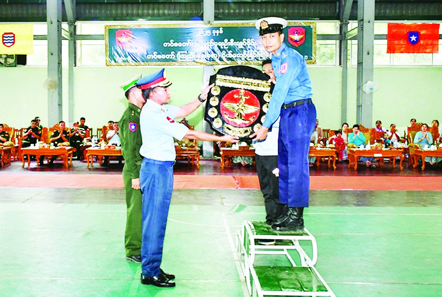 ဦးစွာ တက်ရောက်လာကြသူများက ကာကွယ်ရေးဦးစီးချုပ်ရုံး (ရေ) ကိုယ်စားပြုအသင်းနှင့် ကာကွယ်ရေးဦးစီးချုပ်ရုံး (ကြည်း) စခန်းမှူးရုံး ကိုယ်စားပြုအသင်းတို့၏ ဗိုလ်လုပွဲယှဉ်ပြိုင်ကစားမှုကို ကြည့်ရှုအားပေးကြသည်။ ထို့နောက် ဆုပေးပွဲကို ဆက်လက်ကျင်းပရာ ပြိုင်ပွဲအမျိုးအစားအလိုက် တစ်ဦးချင်းဆုရရှိကြသူများ၊ အသင်းလိုက်ဆုရရှိကြသူများ၊ ဒိုင်အဖွဲ့ဝင်များနှင့် တံခွန်စိုက်ဒိုင်းဆုရရှိသော ကာကွယ်ရေးဦးစီးချုပ်ရုံး (ရေ) ကိုယ်စားပြုအသင်းအား တပ်မတော်ကာကွယ်ရေးဦးစီးချုပ်ကိုယ်စား အလယ်ပိုင်းတိုင်းစစ်ဌာနချုပ် မိတ္ထီလာတပ်နယ်မှ တာဝန်ရှိသူများက တံခွန်စိုက်ဒိုင်းဆုနှင့် ဂုဏ်ပြုဆုငွေများ ပေးအပ်ချီးမြှင့်ကြသည်။