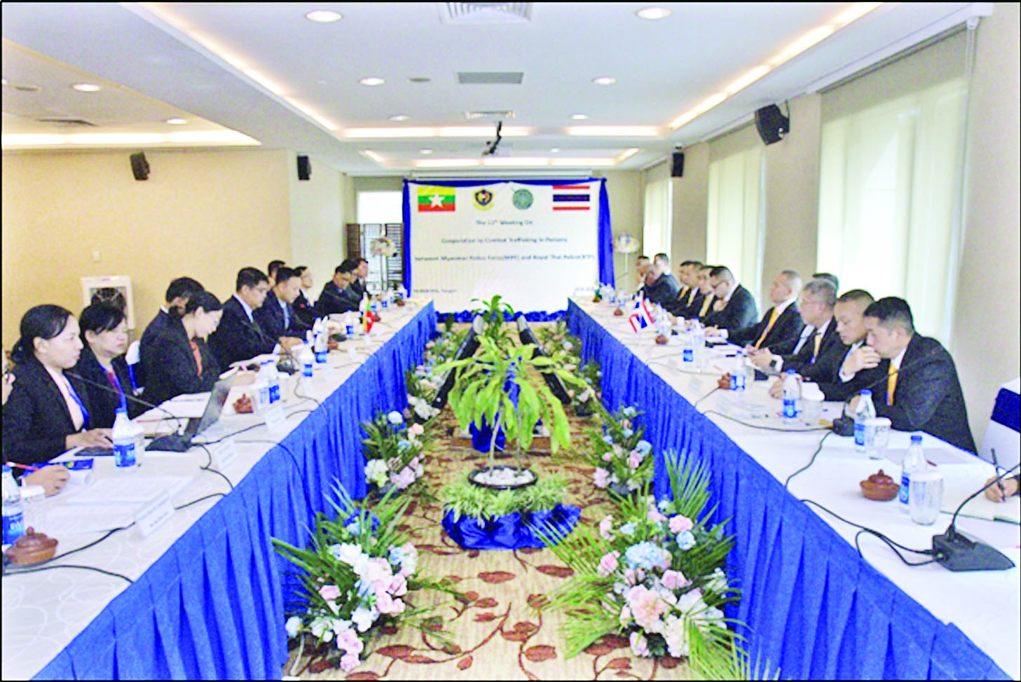 (၂၄) ကြိမ်မြောက် မြန်မာနိုင်ငံရဲတပ်ဖွဲ့နှင့် ထိုင်းနိုင်ငံအထူးစုံစမ်းစစ်ဆေးရေးဦးစီးဌာနတို့အကြား လူကုန်ကူးမှုတိုက်ဖျက်ရေး ပူးပေါင်းဆောင်ရွက်မှုဆိုင်ရာ အစည်းအဝေးနှင့် (၁၁) ကြိမ်မြောက် မြန်မာနိုင်ငံရဲတပ်ဖွဲ့နှင့် ထိုင်းနိုင်ငံ တော်ဝင်ရဲအဖွဲ့တို့အကြား လူကုန်ကူးမှုတိုက်ဖျက်ရေး ပူးပေါင်းဆောင်ရွက်မှုဆိုင်ရာအစည်းအဝေးတို့ကို ဩဂုတ် ၂၁ ရက်နှင့် ၂၂ ရက်တို့တွင် ရန်ကုန်မြို့ PARKROYAL Hotel ၌ အိမ်ရှင်အဖြစ် လက်ခံကျင်းပပြုလုပ်သည်။