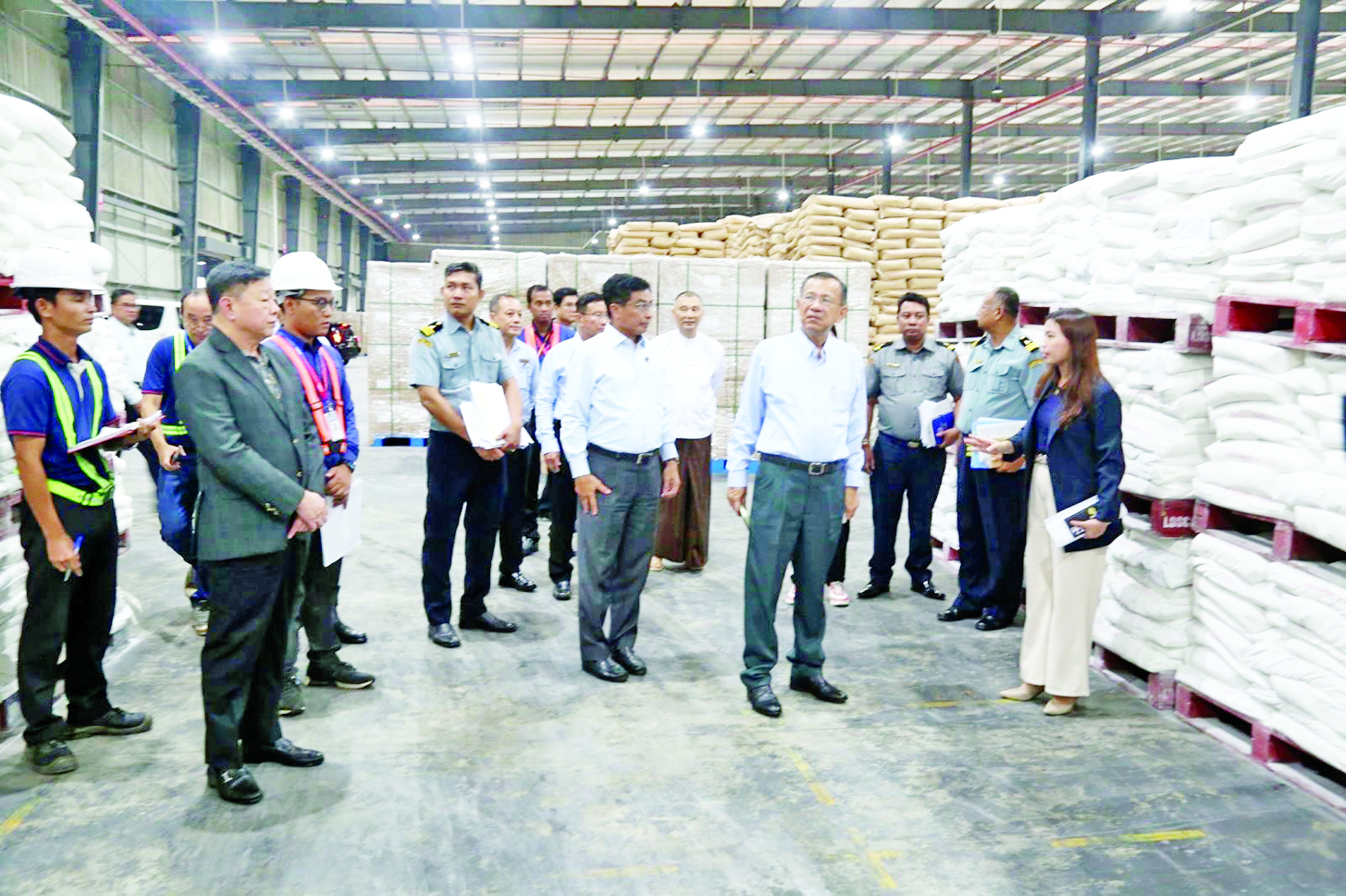 ဆက်လက်၍ ပြည်ထောင်စုဝန်ကြီးများသည် တာဝန်ရှိသူများနှင့်အတူ ရန်ကုန်တိုင်းဒေသကြီး ဒဂုံမြို့သစ်အရှေ့ပိုင်းမြို့နယ် ရွာသာကြီး Dry Port သို့ ရောက်ရှိကြပြီး KM နှင့် RG ကုမ္ပဏီတို့မှ တာဝန်ရှိသူများ၏ တင်ပြချက်များအပေါ် လိုအပ်သည်များ ပေါင်းစပ်ညှိနှိုင်းပေးကာ အကောက်ခွန်ကုန်လှောင်ရုံ (Bonded Warehouse) ၌ လျှပ်စစ်မော်တော်ယာဉ်များ၊ ကုန်ပစ္စည်းသိုလှောင်ထားရှိမှုများနှင့် အကောက်ခွန်ဆိုင်ရာ လုပ်ငန်းဆောင်ရွက်နေမှုများကို ကြည့်ရှုစစ်ဆေးခဲ့ကြောင်း သိရသည်။