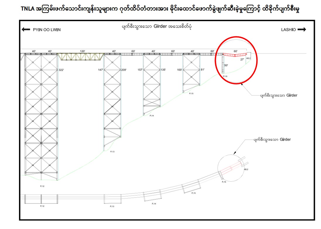 ထိုသို့ TNLA လက်နက်ကိုင်အကြမ်းဖက် သောင်းကျန်းသူများအနေဖြင့် ဆုတ်ခွာထွက်ပြေးစဉ် ယနေ့နံနက်ပိုင်းတွင် မြန်မာနိုင်ငံ၏ အထင်ကရအမှတ်အသားနှင့် ကမ္ဘာ့အံ့ဖွယ်စာရင်းဝင်ဂုတ်ထိပ်တံတားအား ယုတ်မာရိုင်းစိုင်းစွာ မိုင်းထောင်ဖောက်ခွဲဖျက်ဆီးခဲ့သောကြောင့် ကျောက်မဲမြို့ ဘက်အခြမ်းတံတားတိုင်အမှတ် (P-16) နှင့် ကမ်းကပ်ခုံ (AB - 2) နေရာတို့အကြား ပေ ၆၀ အရှည်ရှိ တံတားသံပေါင်နေရာနှင့် တံတား၏ ကမ်းကပ်ခုံ (AB - 2) တို့ ပျက်စီးခဲ့ရသည်။