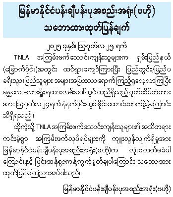 ထို့ပြင် ဗုဒ္ဓဘာသာကလျာဏယုဝအသင်း YMBA (ဗဟို)၊ ဘာသာပေါင်းစုံ ချစ်ကြည်ညီညွတ်ရေးအဖွဲ့ (ဗဟို)၊ မြန်မာနိုင်ငံဧဝံဂေလိခရစ်ယာန်မဟာမိတ်အဖွဲ့ချုပ်၊ ပြည်ထောင်စု မြန်မာနိုင်ငံမက်သဒစ်အသင်းတော် (အောက်မြန်မာပြည်)၊ ယုံကြည်ခြင်း ဧဝံဂေလိအသင်းတော် (ပဲခူး)၊ လွတ်မြောက်ခြင်းအသင်းတော် (ရန်ကုန်)၊ မြန်မာနိုင်ငံလုံးဆိုင်ရာဟိန္ဒူ ဘာသာရေးဗဟိုအဖွဲ့ချုပ်၊ မြန်မာနိုင်ငံလုံးဆိုင်ရာ တမီလ်ဟိန္ဒူဖောင်ဒေးရှင်း (ဗဟို)၊ သနန္တဓမ္မပါလက (ဟိန္ဒူ) အဖွဲ့ချုပ်၊ မြန်မာနိုင်ငံလုံးဆိုင်ရာ အစ္စလာမ်ဘာသာရေးအဖွဲ့ကြီး၊ ပိန္နဲကုန်းရခိုင်ဂျာမေဗလီ၊ ဘူးသီးတောင်မောင်တောဒေသဖွံ့ဖြိုးရေးအသင်း၊ မြန်မာနိုင်ငံပန်းချီပန်းပု အစည်းအရုံး (ဗဟို)၊ မြန်မာနိုင်ငံသဘင်အစည်းအရုံး (ဗဟို)၊ မြန်မာနိုင်ငံဟာသပညာရှင်များ အစည်းအရုံး၊ မြန်မာ-ရှိအာဟ် မွတ်စ်လင်စ်ဘာသာရေးအဖွဲ့ (ဗဟို)၊ မြန်မာနိုင်ငံသတင်းမီဒီယာကောင်စီ၊ မြန်မာနိုင်ငံအားကစားမီဒီယာများ အဖွဲ့ချုပ်၊ မြန်မာနိုင်ငံရုပ်ရှင်အစည်းအရုံး၊ မြန်မာနိုင်ငံစာရေးဆရာအသင်းနှင့် မြန်မာနိုင်ငံဂီတအစည်းအရုံး (ဗဟို) တို့မှ ပြင်းထန်စွာ ကန့်ကွက်ရှုတ်ချပါကြောင်း သဘောထားများ အသီးသီးထုတ်ပြန်ခဲ့ကြကြောင်း သတင်းရရှိသည်။