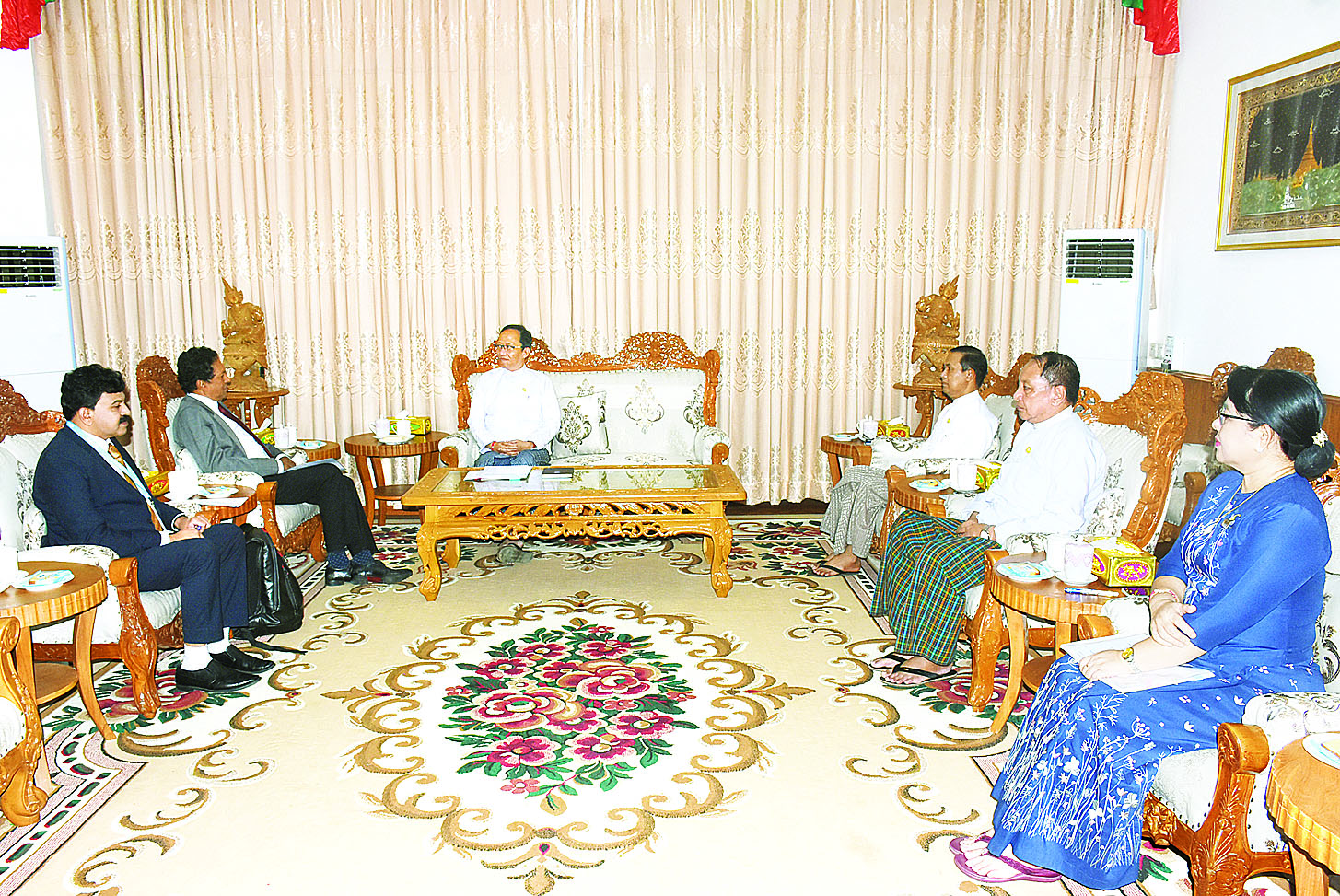 ကျန်းမာရေးဝန်ကြီးဌာန ပြည်ထောင်စုဝန်ကြီး ဒေါက်တာသက်ခိုင်ဝင်းသည် ကမ္ဘာ့ကျန်းမာရေးအဖွဲ့ (WHO) မှ မြန်မာနိုင်ငံဆိုင်ရာဌာနေကိုယ်စားလှယ် မစ္စတာသူရှာရာဖာနန်ဒိုအား ယနေ့မွန်းလွဲပိုင်းတွင် နေပြည်တော်ရှိ အဆိုပါဝန်ကြီးဌာန ပြည်ထောင်စုဝန်ကြီးဧည့်ခန်းမ၌ လက်ခံတွေ့ဆုံသည်။