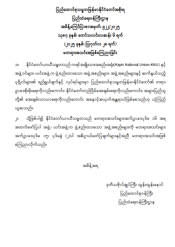 နိုင်ငံတော်အစိုးရ၏ ကြေညာချက်များ