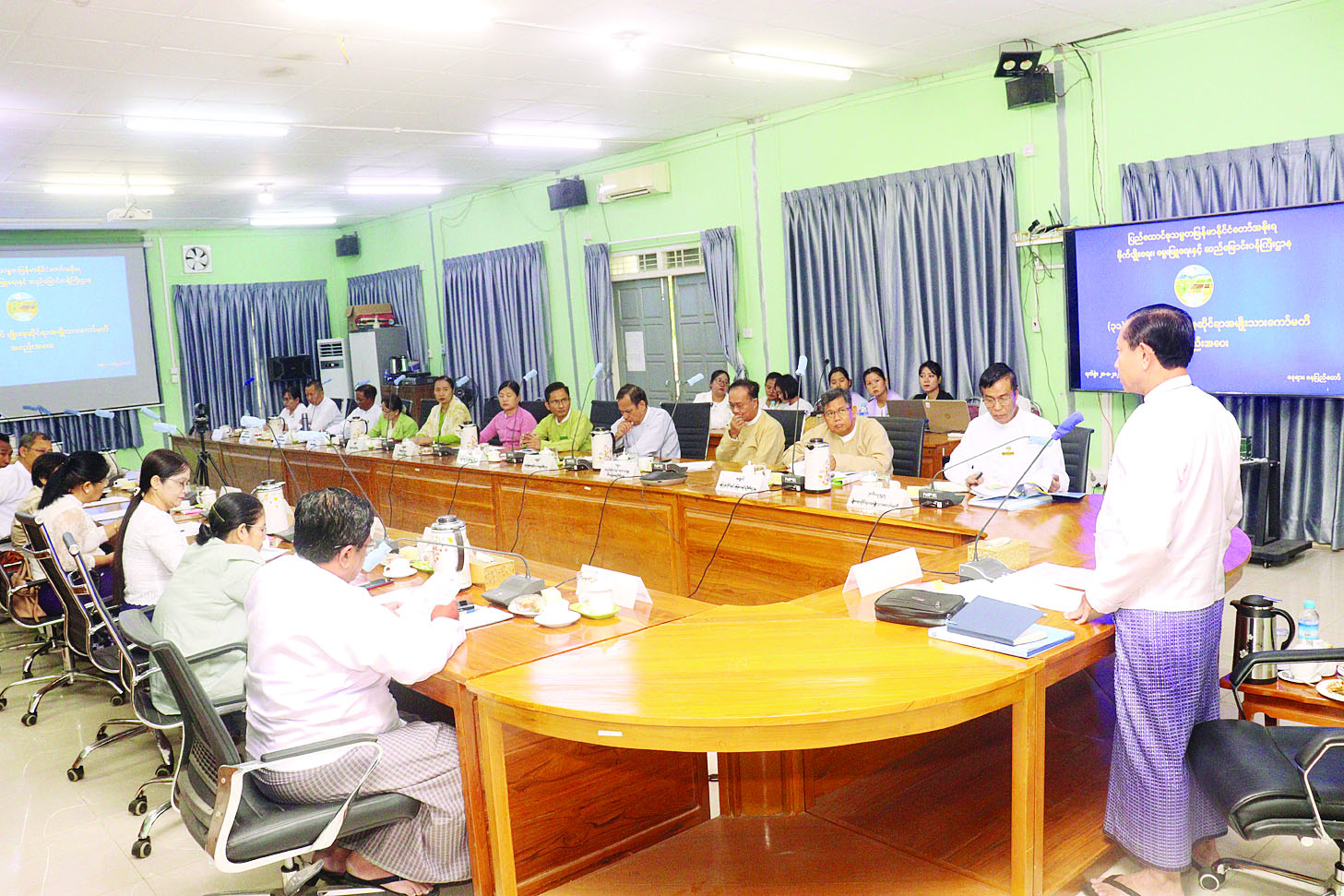မွန်းလွဲပိုင်းတွင် အမျိုးသားအပင်မျိုးသစ် အကာအကွယ်ပေးရေးဆိုင်ရာ ဗဟိုကော်မတီ၏ ပဉ္စမအကြိမ် ညှိနှိုင်းအစည်းအဝေးကို ဆက်လက်ကျင်းပရာ ဗဟိုကော်မတီဥက္ကဋ္ဌ ဒုတိယဝန်ကြီး ဒေါက်တာတင်ထွဋ်နှင့် ဗဟိုကော်မတီဝင်များ တက်ရောက်ကြသည်။
