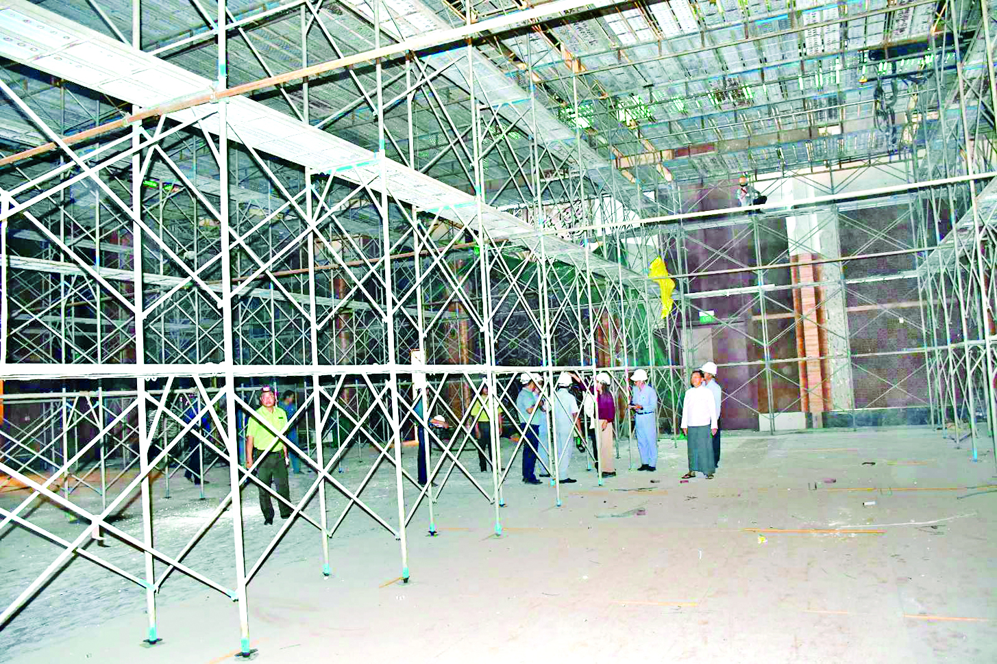 ယမန်နေ့ညပိုင်းက နေပြည်တော်ကောင်စီဥက္ကဋ္ဌသည် တာဝန်ရှိသူများနှင့်အတူ မြန်မာအပြည်ပြည်ဆိုင်ရာ ကွန်ဗင်းရှင်းဗဟိုဌာန (၁) သို့ သွားရောက်ပြီး ငလျင်ဘေးကြောင့် ထိခိုက်ပျက်စီးခဲ့မှုများ ပြန်လည်ပြုပြင်နေမှု အခြေအနေများကို လှည့်လည်ကြည့်ရှုစစ်ဆေးပြီး လုပ်ငန်းများ အပိုင်းလိုက် အမြန်ပြီးစီးအောင် ဆောင်ရွက်ရေး၊ အရည်အသွေးပြည့်မီသည့် ပစ္စည်းများကိုသာ လုပ်ငန်းခွင်တွင် အသုံးပြုရေးတို့ကို မှာကြားသည်။