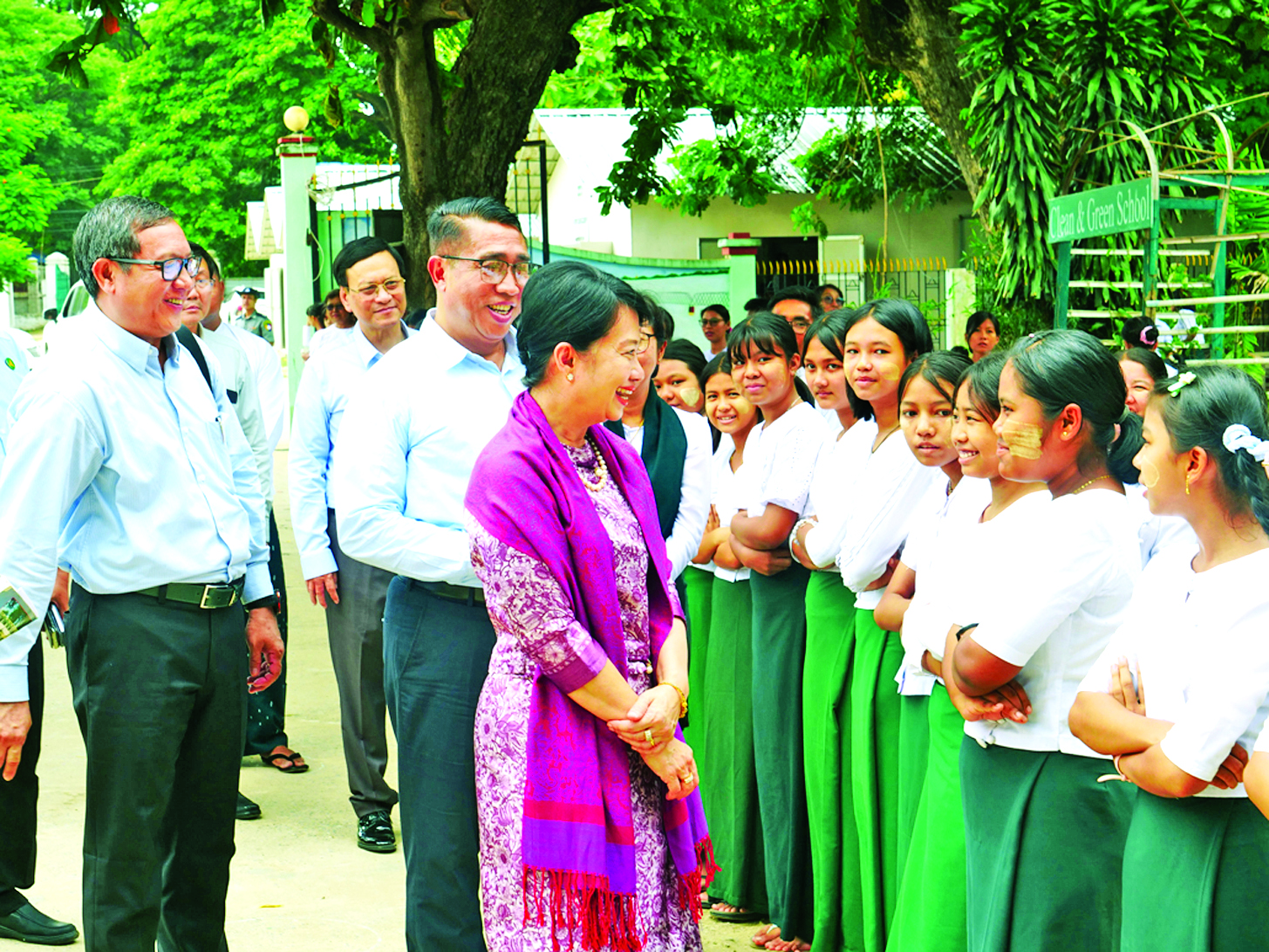 ယင်းနောက် စစ်ကိုင်းမြို့ အမှတ်(၁) အခြေခံပညာအထက်တန်းကျောင်းနှင့် စစ်ကိုင်းပညာရေး ဒီဂရီကောလိပ်ကျောင်းများမှ ဆရာ ဆရာမများ၊ ကျောင်းသား ကျောင်းသူများနှင့် တွေ့ဆုံအမှာစကား ပြောကြားပြီးကျောင်းအတွင်း စာသင်ဆောင်ပြုပြင် တည်ဆောက်ထားရှိမှု၊ ယာယီစာသင်ဆောင်များတွင် ကျောင်းသား ကျောင်းသူများ စိတ်အေးချမ်းသာစွာ သင်ယူနေမှုအခြေအနေများကို လှည့်လည်ကြည့်ရှု ကာ လိုအပ်သည်များ မှာကြားသည်။