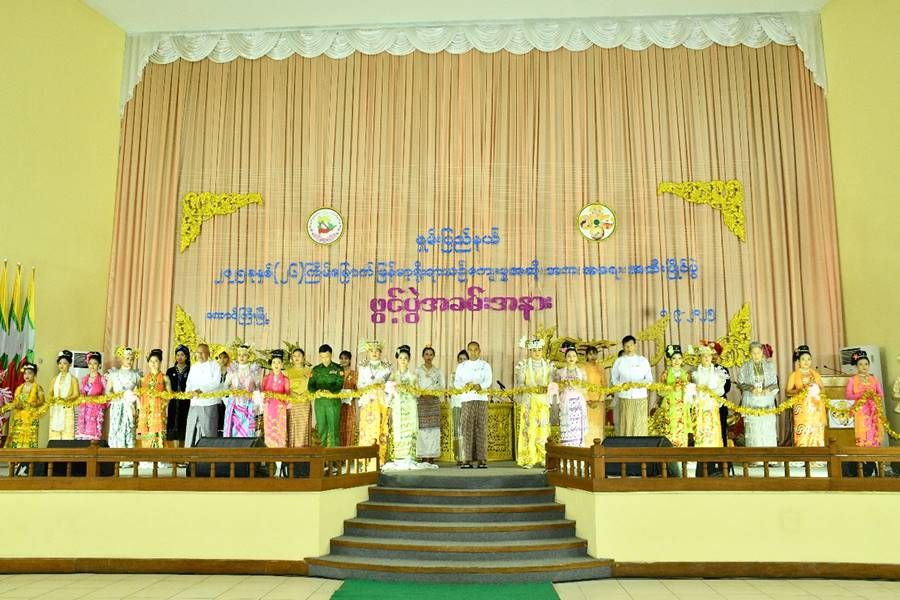 ၂၀၂၅ ခုနှစ်၊ ရှမ်းပြည်နယ် (၂၆)ကြိမ်မြောက် မြန်မာ့ရိုးရာယဉ်ကျေးမှု အဆို၊ အက၊ အရေး၊ အတီး ပြိုင်ပွဲဖွင့်ပွဲအား ယနေ့နံနက်ပိုင်းတွင် တောင်ကြီးမြို့၊ ကျောင်းကြီးစုရပ်ကွက်ရှိ တောင်ကြီးတက္ကသိုလ် ဘွဲ့နှင်းသဘင်ခန်းမ၌ပြုလုပ်ရာ အခမ်းအနားသို့ ရှမ်းပြည်နယ်အစိုးရအဖွဲ့ ပြည်နယ်ဝန်ကြီးချုပ် ဦးအောင်အောင်၊ အရှေ့ပိုင်းတိုင်းစစ်ဌာနချုပ် တိုင်းမှူး ဗိုလ်မှူးချုပ် နိုင်ဇော်ဦး၊ အစိုးရအဖွဲ့ဝင်ဝန်ကြီးများ၊ ဌာနဆိုင်ရာတာဝန်ရှိသူများ၊ ပြည်နယ်၊ ခရိုင်၊ မြို့နယ်များမှ ပြိုင်ပွဲဝင်များ၊ ဝါသနာရှင်များ၊ အကဲဖြတ်ပညာရှင်များ၊ ဖိတ်ကြားထားသူများ တက်ရောက်ကြသည်။