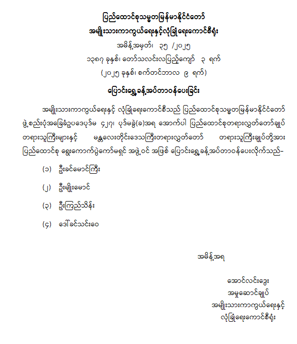 ဝန်ကြီးဌာန ကြေညာချက်များ