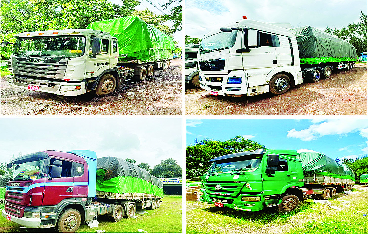 ထို့အပြင် ကရင်ပြည်နယ် တရားမဝင်ကုန်သွယ်မှုတိုက်ဖျက်ရေးအထူးအဖွဲ့၏ စီမံခန့်ခွဲမှုဖြင့် တာဝန်ကျပူးပေါင်းအဖွဲ့များက စစ်ဆေးမှုများဆောင်ရွက်ခဲ့ရာ စက်တင်ဘာ ၆ ရက်တွင် ဘားအံမြို့ သာယာကုန်းကျေးရွာ ယာဉ်ရပ်နားဝင်း၌ မော်တော်ယာဉ်လေးစီးပေါ်မှ တရားဝင်စာရွက်စာတမ်းအထောက်အထား တင်ပြနိုင်ခြင်းမရှိသည့် လူသုံးကုန်ပစ္စည်း ၃၉ မျိုး၊ လုပ်ငန်းသုံးပစ္စည်း ၃၇ မျိုး(ခန့်မှန်းတန်ဖိုးငွေကျပ် ၃၅၂၇၉၀၇၀၀)နှင့် အဆိုပါပစ္စည်းများ တင်ဆောင်လာသည့် Hino Tractor Head တစ်စီး၊ JAC Tractor Head တစ်စီး၊ Dong Feng Tractor Head တစ်စီး၊ Howo Sino Tractor Head တစ်စီးနှင့် နောက်တွဲယာဉ်လေးတွဲ (ခန့်မှန်းတန်ဖိုးငွေကျပ် ၂၉၀၀၀၀၀၀၀)ကို လည်းကောင်း၊ ဘားအံမြို့ ခရဲကမ်းနားကျေးရွာအနီး၌ မော်တော်ယာဉ် တစ်စီးပေါ်မှ တရားဝင်စာရွက်စာတမ်းအထောက်အထားတင်ပြနိုင်ခြင်းမရှိသည့် စားသောက်ကုန်ပစ္စည်း ၁၁ မျိုး၊ လူသုံးကုန်ပစ္စည်း သုံးမျိုး၊ လုပ်ငန်းသုံးပစ္စည်း တစ်မျိုး (ခန့်မှန်းတန်ဖိုးငွေကျပ် ၈၉၄၃၆၀၀၀)နှင့် အဆိုပါပစ္စည်းများ တင်ဆောင်လာသည့် Man Tractor Head တစ်စီး နှင့် နောက်တွဲယာဉ်တစ်တွဲ (ခန့်မှန်းတန်ဖိုးငွေကျပ် ၉၀၀၀၀၀၀၀)ကိုလည်းကောင်း၊ ဘားအံမြို့ ထီးပို့ကလို့ကျေးရွာအနီး၌ မော်တော်ယာဉ် တစ်စီးပေါ်မှ တရားဝင်စာရွက်စာတမ်းအထောက်အထား တင်ပြနိုင် ခြင်းမရှိသည့် လုပ်ငန်းသုံးပစ္စည်း ၃၂ မျိုး၊ လူသုံးကုန်ပစ္စည်းခုနစ်မျိုး၊ စားသောက်ကုန်ပစ္စည်းတစ်မျိုး (ခန့်မှန်းတန်ဖိုးငွေကျပ် ၁၉၇၇၃၅၀၀၀)နှင့် အဆိုပါပစ္စည်းများ တင်ဆောင်လာသည့် Scania Tractor Head တစ်စီးနှင့် နောက်တွဲယာဉ်တစ်တွဲ (ခန့်မှန်းတန်ဖိုးငွေကျပ် ၉၀၀၀၀၀၀၀) ကိုလည်းကောင်း စုစုပေါင်းခန့်မှန်းတန်ဖိုးငွေကျပ် ၁၁၀၉၉၆၁၇၀၀ ကို ဖမ်းဆီးရမိခဲ့ပြီး အကောက်ခွန်လုပ်ထုံးလုပ်နည်းများနှင့်အညီ အရေးယူဆောင်ရွက်လျက်ရှိသည်။