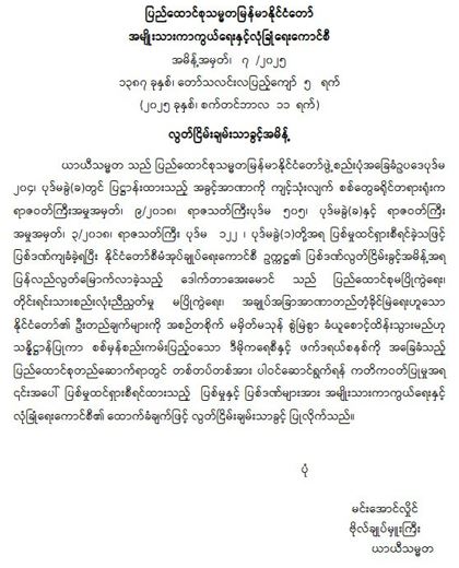 ဝန်ကြီးဌာန ကြေညာချက်များ