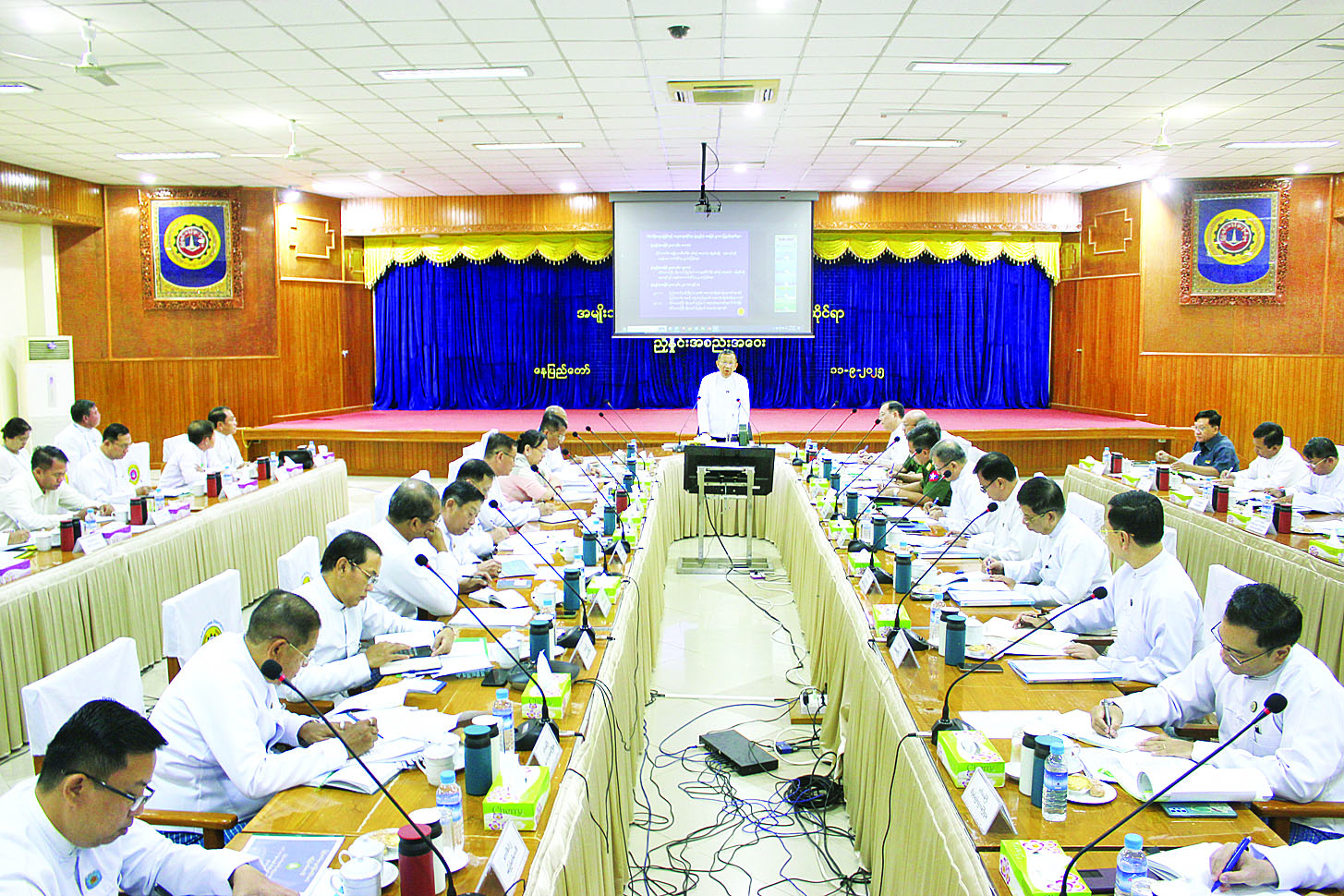 ၂၀၂၆-၂၀၂၇ ဘဏ္ဍာရေးနှစ်၊ အမျိုးသားစီမံကိန်းနှင့် ဒေသန္တရစီမံကိန်းများဆိုင်ရာ ညှိနှိုင်းအစည်းအဝေးကို ယနေ့နံနက်ပိုင်းတွင် နေပြည်တော်ရှိ ဘဏ္ဍာရေးနှင့်အခွန်ဝန်ကြီးဌာန အစည်းအဝေးခန်းမ၌ကျင်းပရာ အမျိုးသားစီမံကိန်းကော်မရှင်အတွင်းရေးမှူး ဘဏ္ဍာရေးနှင့်အခွန်ဝန်ကြီးဌာန ပြည်ထောင်စုဝန်ကြီး ဒေါက်တာကံဇော်၊ ဒုတိယဝန်ကြီးများ၊ အမြဲတမ်းအတွင်းဝန်နှင့် ဌာနဆိုင်ရာတာဝန်ရှိသူများ တက်ရောက်ကြပြီး တိုင်းဒေသကြီး၊ ပြည်နယ်စီးပွားရေးရာဝန်ကြီးများက Video Conference ဖြင့် တက်ရောက်ကြသည်။