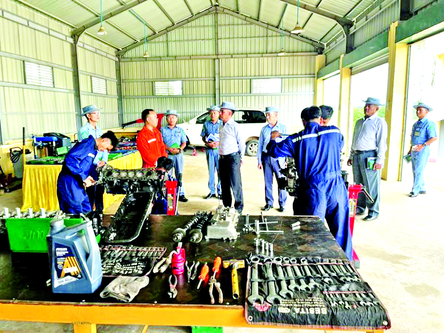 နယ်စပ်ရေးရာဝန်ကြီးဌာန ဒုတိယဝန်ကြီး ဗိုလ်ချုပ်ဖြိုးသန့်သည် တာဝန်ရှိသူများနှင့်အတူ ယမန်နေ့က အောင်ပန်းမြို့ရှိ နယ်စပ်ဒေသ တိုင်းရင်းသားလူငယ်များ စက်မှုလက်မှုပညာသင်တန်းကျောင်းသို့ သွားရောက်ကြည့်ရှုစစ်ဆေးသည်။