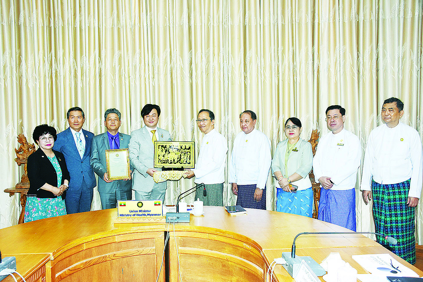 ကိုရီးယားသမ္မတနိုင်ငံ SDG group inc နှင့် မြန်မာနိုင်ငံ MCS group Co.,Ltd တို့မှ ဆေးနှင့် ဆေးပစ္စည်းများ ပူးပေါင်းလှူဒါန်းပွဲကို ယနေ့နံနက်ပိုင်းတွင် ကျန်းမာရေးဝန်ကြီးဌာန အစည်းအဝေးခန်းမ၌ ကျင်းပသည်။