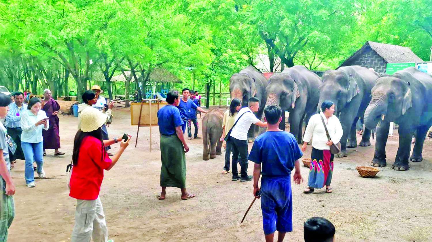 အဆိုပါ ဆင်စခန်းတွင် ဆင်ကြီးရှစ်ကောင်နှင့် ဆင်ပေါက်လေးသုံးကောင်ရှိပြီး ဆင်များအား ဆင်စာဘူဖေးကျွေးသူများ၊ တစ်နိုင်တစ်ပိုင် ဆင်စာကျွေးသူများနှင့် ဆင်ပေါက်လေးသုံးကောင်ကို လာရောက်ကြည့်ရှုသူများဖြင့် လည်ပတ်သူများပြားလာကြောင်း သိရသည်။