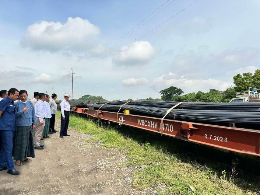 အဆိုပါ HRB 500 အမျိုးအစား သံချောင်းလုံးများအား မြို့ဟောင်းဘူတာသို့ ရောက်ရှိစဉ်တွင် မန္တလေးတိုင်းဒေသကြီးအစိုးရအဖွဲ့ လမ်းပန်းဆက်သွယ်ရေးဝန်ကြီး ဦးအောင်ဇော်ဦးနှင့် တာဝန်ရှိသူများက လာရောက်ကြည့်ရှုစစ်ဆေးခဲ့ကြပြီး မန္တလေးတိုင်းဒေသကြီးအတွင်းရှိ ပြန်လည်ထူထောင်ရေးနှင့် တည်ဆောက်ရေးလုပ်ငန်းများအတွက် ဆက်လက်ဖြန့်ဖြူးပေးသွားမည်ဖြစ်ကြောင်း သတင်းရရှိသည်။