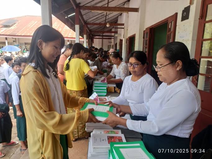 ထိုသို့ဆောင်ရွက်ပေးလျက်ရှိရာ ယနေ့တွင် ကျောက်မဲမြို့ရှိ အမှတ် (၁) အခြေခံပညာအထက်တန်းကျောင်း၌ ကျောင်းနေအရွယ်ကလေးများအား တန်းစဉ်အလိုက် စတင်ကျောင်းအပ်လက်ခံခဲ့ရာ ကျောင်းလာရောက်အပ်နှံမှုအနေဖြင့် ကျောင်းသား/ ကျောင်းသူ ၂၀၆ ဦး ရှိကြောင်းသိရှိရသည်။ အဆိုပါကျောင်းအပ်နှံသည့် ကျောင်းသား/ ကျောင်းသူများအား ပညာရေးဝန်ကြီးဌာနမှ အခမဲ့ပေးအပ်သည့် ကျောင်းသုံးစာအုပ်များ၊ စာရေးကိရိယာများနှင့် ထောက်ပံ့ပစ္စည်းများကို တစ်ပါတည်းပေးအပ်ကြပြီး ဌာနဆိုင်ရာတာဝန်ရှိသူများက လိုအပ်သည်များ ဆောင်ရွက်ပေးကြသည်။