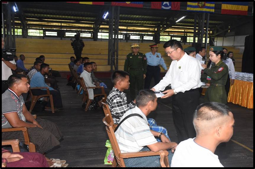 ဦးစွာ တိုင်းဒေသကြီးဝန်ကြီးချုပ်နှင့် တိုင်းမှူးတို့က ပြည်သူ့စစ်မှုထမ်းသင်တန်း အမှတ်စဉ် (၁၈) သို့ တက်ရောက်ကြမည့် နိုင်ငံ့သားကောင်းရတနာများအတွက် အဝတ်အထည်များ ပေးအပ်သည်။ ထို့နောက် တိုင်းဒေသကြီးဝန်ကြီးချုပ်၊ တိုင်းမှူးနှင့် တာဝန်ရှိသူများက နိုင်ငံ့သားကောင်းရတနာများအား ရင်းရင်းနှီးနှီးနှုတ်ဆက်အားပေးစကားပြောကြားပြီး လိုအပ်သည်များကို ပေါင်းစပ်ညှိနှိုင်းဆောင်ရွက်ပေးခဲ့ကြောင်း သတင်းရရှိသည်။