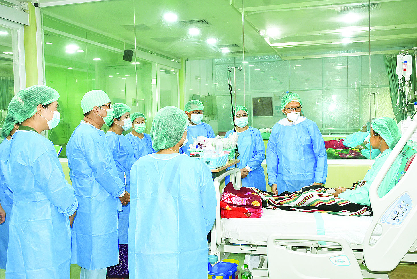 အဆိုပါ ကျောက်ကပ်အစားထိုးခွဲစိတ်ကုသမှုများကို အထူးကုဆေးရုံကြီး(ခုတင်-၅၀၀) ရန်ကုန်မှ ပါမောက္ခ/ ဌာနမှူး ပါမောက္ခဒေါက်တာကျော်စိုးကျော်၊ နေပြည်တော်ပြည်သူ့ဆေးရုံကြီး (ခုတင်-၁၀၀၀)မှ ပါမောက္ခဒေါက်တာသဇင်ခိုင်နှင့် ဆေးတက္ကသိုလ် (၂)ရန်ကုန်မှ ပါမောက္ခ/ဌာနမှူး ပါမောက္ခဒေါက်တာ မျိုးသန်းတို့ပါဝင်သော ဆီးနှင့်ကျောက်ကပ်ခွဲစိတ် ကုသမှုဆိုင်ရာလုပ်ငန်းအဖွဲ့၊ အထူးကုဆေးရုံကြီး (ခုတင်-၅၀၀) ရန်ကုန်မှ ပါမောက္ခဒေါက်တာရည်ရည်ခိုင်၊ ပါမောက္ခ/ဌာနမှူး(ငြိမ်း) ပါမောက္ခ ဒေါက်တာခင်သီတာသွင်၊ နေပြည်တော်ပြည်သူ့ ဆေးရုံကြီး(ခုတင်-၁၀၀၀)မှ အထူးကုဆရာဝန်ကြီး ဒေါက်တာယဉ်ယဉ်မွန်၊ အထူးကုဆရာဝန်ကြီး ဒေါက်တာငုဝါဝါမင်းတို့ပါဝင်သော ဆီးနှင့်ကျောက်ကပ် ဆေးကုသမှုဆိုင်ရာလုပ်ငန်းအဖွဲ့၊ ရန်ကုန်ပြည်သူ့ ဆေးရုံကြီးမှ ပါမောက္ခ/ဌာနမှူး ပါမောက္ခဒေါက်တာ ဝင်းဝင်းကျော် ဦးဆောင်သော နှလုံးနှင့်သွေးကြောခွဲစိတ်မှုဆိုင်ရာ လုပ်ငန်းအဖွဲ့၊ နေပြည်တော်ပြည်သူ့ ဆေးရုံကြီး (ခုတင်-၁၀၀၀)မှ ပါမောက္ခဒေါက်တာ မောင်မောင်ဆွေ၊ ပါမောက္ခ/ဌာနမှူး(ငြိမ်း) ပါမောက္ခ ဒေါက်တာကြည်ကြည်စန်းတို့ပါဝင်သော မေ့ဆေးပညာဆိုင်ရာလုပ်ငန်းအဖွဲ့၊ နေပြည်တော်ပြည်သူ့ ဆေးရုံကြီး (ခုတင်-၁၀၀၀)မှ ပါမောက္ခဒေါက်တာ စန်းစန္ဒာခင်နှင့် တွဲဖက်ပါမောက္ခ(အဏုဇီဝ) ဒေါက်တာ ခိုင်ဝင်းထွန်းတို့ပါဝင်သော ရောဂါရှာဖွေရေးလုပ်ငန်းအဖွဲ့၊ ပါမောက္ခဒေါက်တာစန်းစန္ဒာခင်၊ တွဲဖက်ပါမောက္ခ ဒေါက်တာခိုင်ဝင်းထွန်း၊ အထူးကု ဆရာဝန်ကြီး(သွေးဗေဒ) ဒေါက်တာမီမီခိုင်တို့ ဦးဆောင်သော သွေးနှင့် သွေးပစ္စည်းဆိုင်ရာ အထောက်အကူပြုလုပ်ငန်းအဖွဲ့၊ ပါမောက္ခဒေါက်တာခိုင်ရွှေဝါ ဦးဆောင်သော ဓာတ်မှန်ပညာဆိုင်ရာလုပ်ငန်းအဖွဲ့၊ ဆေးရုံအုပ်ကြီး ဒေါက်တာသောင်းလှိုင် ဦးဆောင်သော ဆေးရုံစီမံအုပ်ချုပ်ရေးအဖွဲ့နှင့် ဆရာဝန်များ၊ ဒုတိယညွှန်ကြားရေးမှူး (သူနာပြုအုပ်ကြီး) ဒေါ်စောရွှေနှင့် သူနာပြုများ၊ သူနာပြုကြီး ဒေါ်ခင်ထားဝင်း၊ သူနာပြုကြီး ဒေါ်သက်ဆု၊ သူနာပြုကြီး ဒေါ်ဥမ္မာလွင်တို့ ဦးဆောင်သော ခွဲစိတ်ခန်းသူနာပြုများ၊ ကျွမ်းကျင်ဝန်ထမ်းများနှင့် အထောက်အကူပြုဝန်ထမ်းများအားလုံး ပူးပေါင်းဆောင်ရွက်ခဲ့ကြခြင်းဖြစ်ကြောင်း သိရသည်။