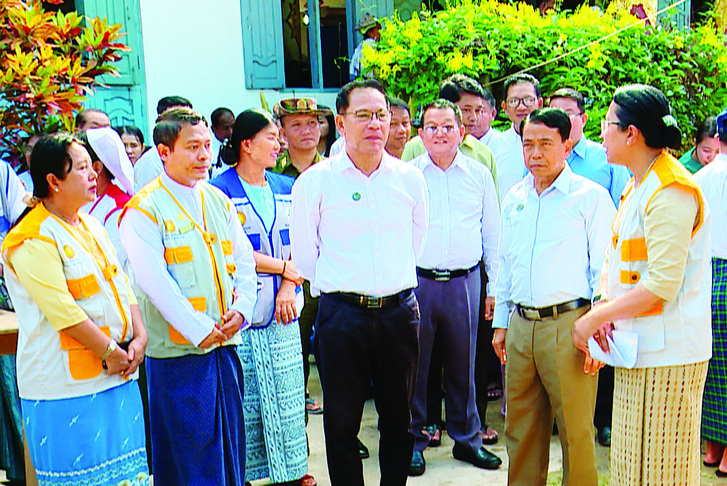 ထို့နောက် နေပြည်တော်ကောင်စီ ခွင့်ပြုရန်ပုံငွေနှင့် ဆည်မြောင်းဦးစီးဌာနက ရာဂီ မုန်တိုင်းဒဏ်ကြောင့် ထိခိုက်ပျက်စီးခဲ့သည့် ပွဲစားရေလွှဲဆည်အား ပြန်လည်ပြုပြင်ဆောင်ရွက်နေမှုကို ကြည့်ရှုစစ်ဆေးပြီး ဒေသခံပြည်သူများနှင့် တွေ့ဆုံအားပေးစကားပြောကြားသည်။
