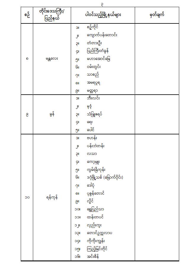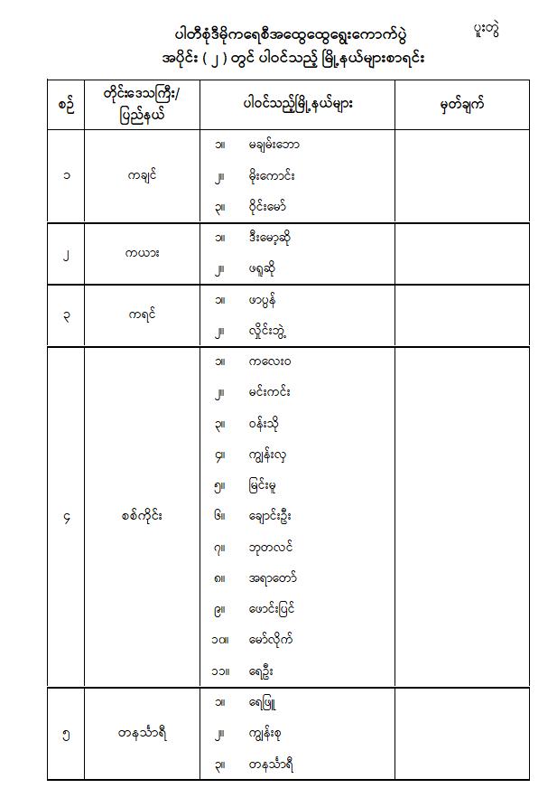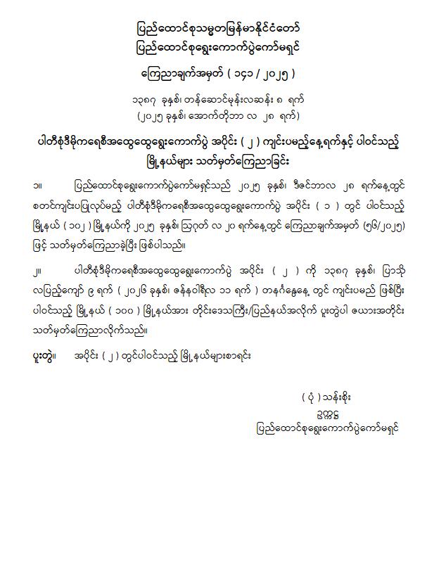 ပါတီစုံဒီမိုကရေစီအထွေထွေရွေးကောက်ပွဲအပိုင်း( ၂ )ကျင်းပမည့် နေ့ရက်နှင့် ပါဝင်သည့်မြို့နယ်များ သတ်မှတ်ကြေညာခြင်း