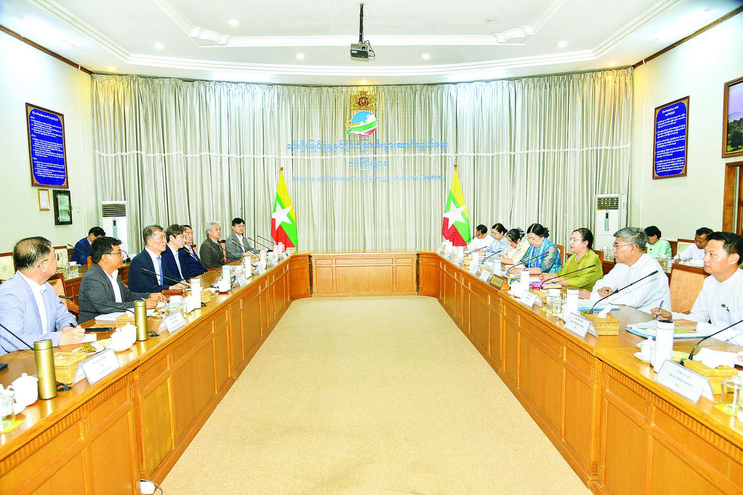 ရင်းနှီးမြှုပ်နှံမှုနှင့် နိုင်ငံခြားစီးပွားဆက်သွယ်ရေးဝန်ကြီးဌာန ပြည်ထောင်စုဝန်ကြီးမြန်မာနိုင်ငံ ရင်းနှီးမြှုပ်နှံမှုကော်မရှင် ဒုတိယဥက္ကဋ္ဌ ဒေါက်တာဝါဝါမောင်သည် ကိုရီးယားနိုင်ငံအခြေစိုက် မြန်မာ- ကိုရီးယား စီးပွားရေးနှင့်လုံခြုံရေးဆိုင်ရာ သုတေသနအဖွဲ့အစည်းမှ Mr. Choi Shin-iL ဦးဆောင်သော ကိုယ်စားလှယ်အဖွဲ့အား ယနေ့ညနေပိုင်းတွင် ရင်းနှီး မြှုပ်နှံမှုနှင့် နိုင်ငံခြားစီးပွားဆက်သွယ်ရေးဝန်ကြီး ဌာန ရုံးအမှတ်(၁ ) နေပြည်တော်၌ လက်ခံတွေ့ဆုံ ဆွေးနွေးသည်။