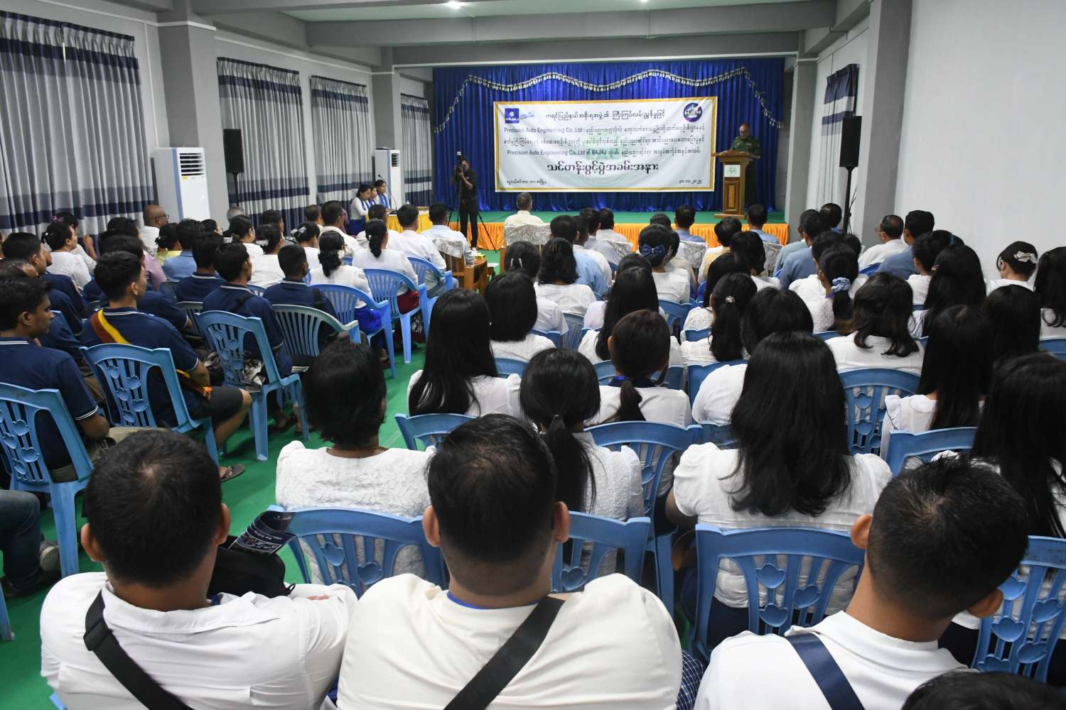 ထို့နောက် Precision Auto Engineering Co.,Ltd မန်းနေဂျင်းဒါရိုက်တာ Mr Vrlkam Krishna က သုံးဘီးနည်းပညာဆိုင်ရာ အလုပ်အကိုင်အခွင့်အလမ်းသင်တန်းနှင့်ပတ်သက်၍ရှင်းလင်းပြောကြားပြီး နည်းပညာတက္ကသိုလ်ဒုတိယပါမောက္ခချုပ် ဒေါက်တာအောင်ဇော်လတ်က အသိပညာပေးဟောပြောပွဲ ဆောင်ရွက်ခြင်းအကြောင်းအားရှင်းလင်းတင်ပြပြီး ကျေးဇူးတင်စကားပြောကြားသည်။ ထို့နောက် ပြည်နယ်တရားလွှတ်တော်တရားသူကြီးချုပ်ဦးညွန့်လင်းက အသိပညာပေးဆွေးနွေးဟောပြောမည့်သူများနှင့် Precision Auto Engineering Co.,Ltd တို့အား ဂုဏ်ပြု လက်မှတ်များပေးအပ်ချီးမြှင့်သည်။