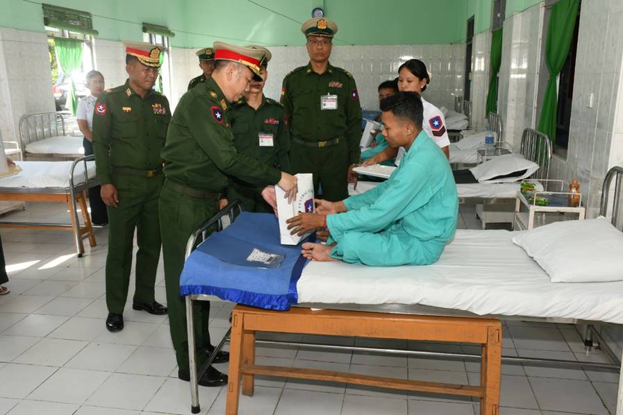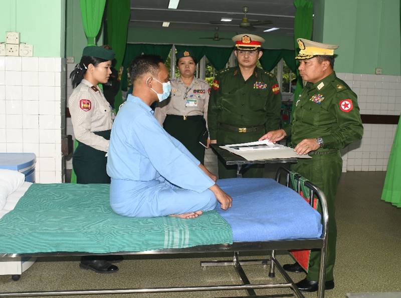 ထို့နောက် တိုင်းစစ်ဌာနချုပ်အလိုက် တိုင်းမှူးများနှင့်တာဝန်ရှိသူများသည် ဆေးရုံများအတွင်းလှည့်လည်ကြည့်ရှုစစ်ဆေး၍ လိုအပ်သည်များညှိနှိုင်းဆောင်ရွက်ပေးခဲ့ကြောင်း သတင်းရရှိသည်။