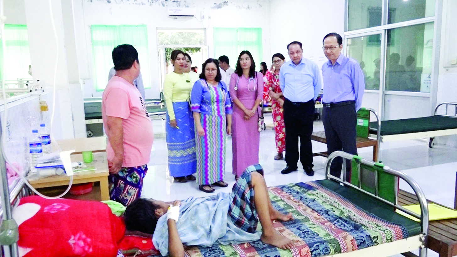ဆက်လက်၍ ပြည်ထောင်စုဝန်ကြီးနှင့်အဖွဲ့သည် သားဖွားမီးယပ်ရောဂါအထူးကုဆေးရုံကြီး-နေပြည်တော်သို့ ရောက်ရှိပြီး ပြင်ပလူနာဌာန၊ သားဖွားဆောင်၊ မီးယပ်ဆောင်၊ ခွဲစိတ်ခန်းများနှင့်မွေးကင်းစ ကလေးကုသဆောင်တို့တွင် လူနာများလက်ခံကုသမှုအခြေအနေ၊ ခွဲစိတ်ကုသမှုများဆောင်ရွက်မှုအခြေ အနေနှင့်မွေးကင်းစကလေးများ အထူးကြပ်မတ်ကုသမှုအခြေအနေများ ကြည့်ရှု၍လူနာများ၊ လူနာ မိသားစုများ၊ အထူးကုဆရာဝန်ကြီးများ၊ သူနာပြုများနှင့်ကျန်းမာရေးဝန်ထမ်းများအား တွေ့ဆုံအားပေး စကားပြောကြားခဲ့ကာ ကျန်ရှိသောပျက်စီးအဆောက်အအုံများအားပြင်ဆင်မှု အမြန်ပြီးစီးရေး၊ ပြင်ဆင် သည့်အဆောက်အအုံများ အရည်အသွေးကောင်းမွန်စေရေးနှင့် ကုသရေးလုပ်ငန်းများနှင့်ပတ်သက်၍ လိုအပ်သည်များ မှာကြားခဲ့ကြောင်းသိရသည်။