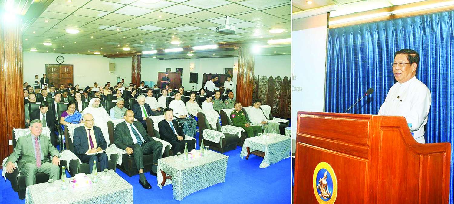 နိုင်ငံခြားရေးဝန်ကြီးဌာနပြည်ထောင်စုဝန်ကြီး ဦးသန်းဆွေသည် မြန်မာနိုင်ငံ၏လက်ရှိဖြစ်ပေါ်တိုးတက်မှုအခြေအနေများနှင့်ပတ်သက်၍ ရန်ကုန်မြို့အခြေစိုက် သံတမန်များနှင့်ကုလသမဂ္ဂအဖွဲ့အစည်းမှကိုယ်စားလှယ်များအား ရှင်းလင်းပြောကြားခြင်းအစီအစဉ်ကို ယနေ့နံနက် ၉ နာရီတွင် ရန်ကုန်မြို့ရှိ နိုင်ငံခြားရေးဝန်ကြီးဌာန ဝန်ဇင်းမင်းရာဇာခန်းမ၌ ကျင်းပပြုလုပ်သည်။