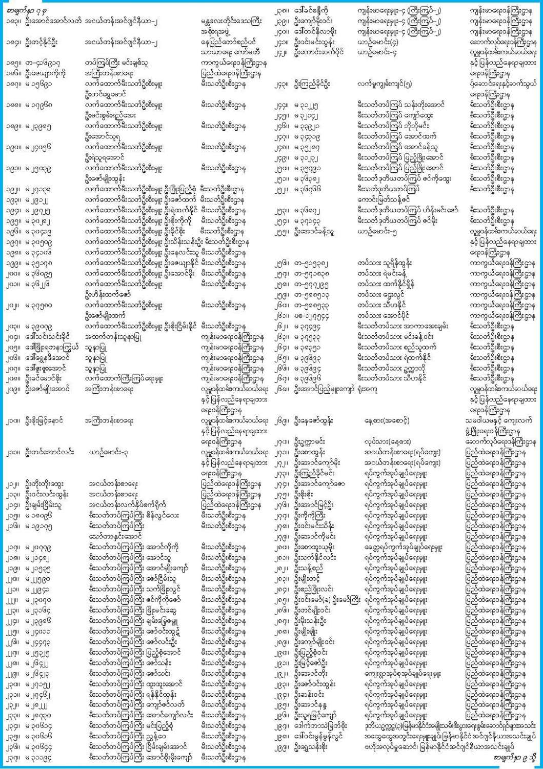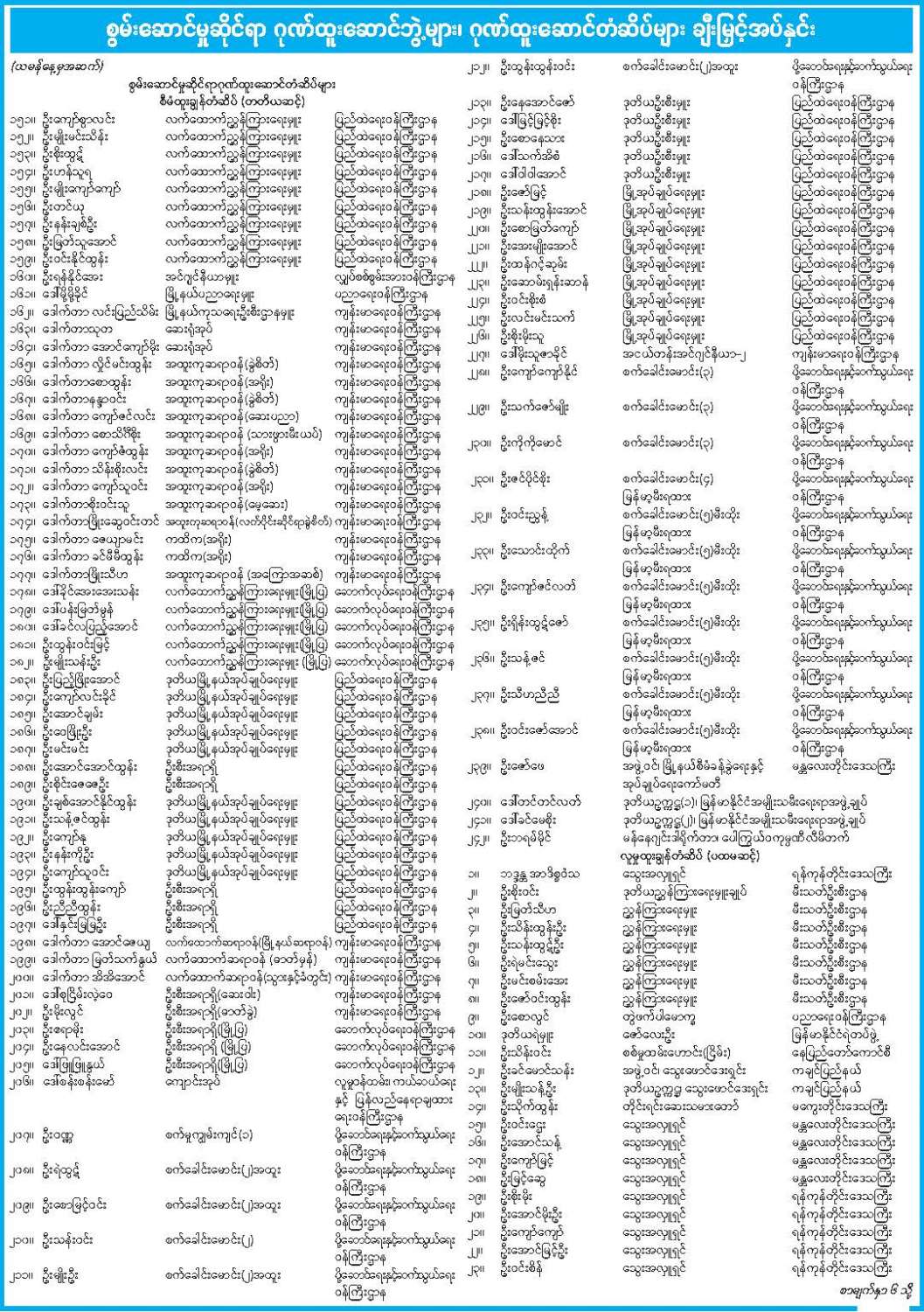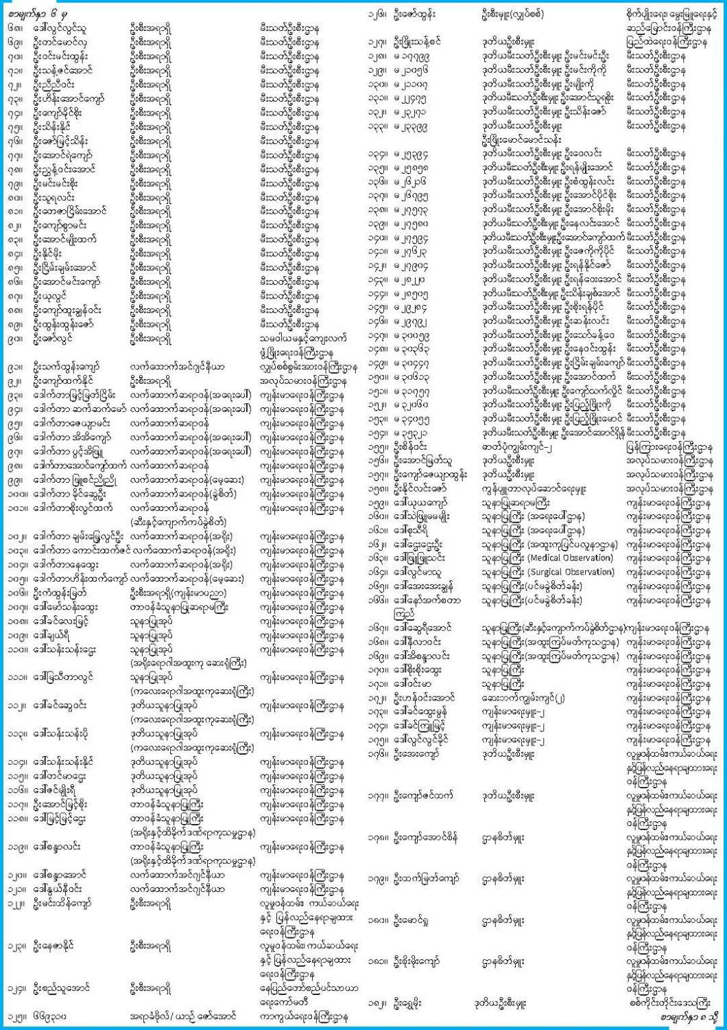 ဝန်ကြီးဌာန ကြေညာချက်များ