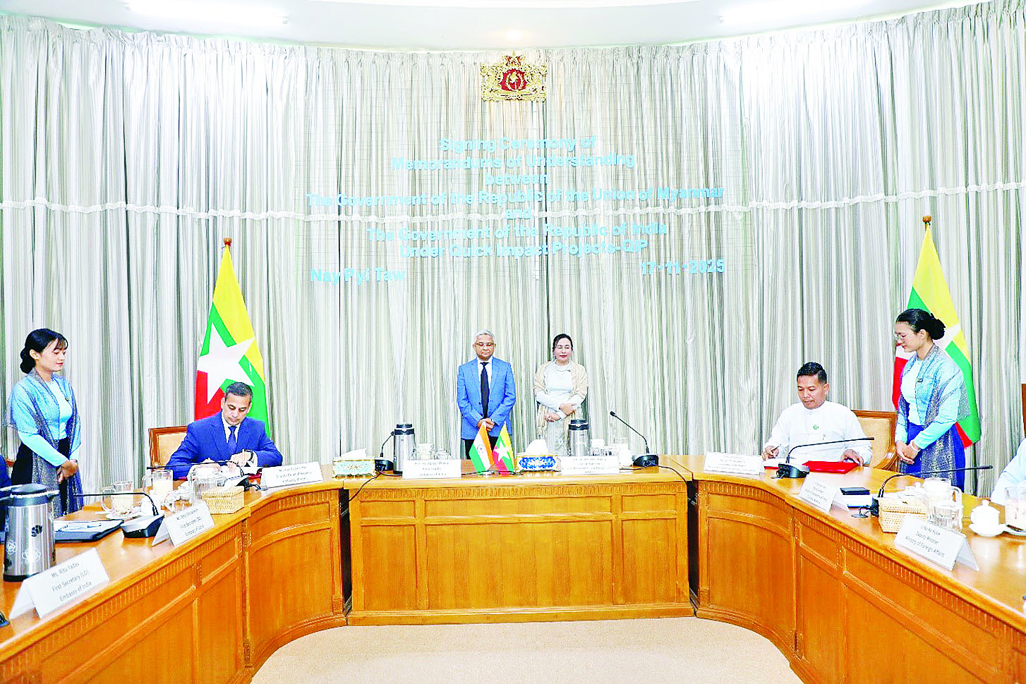 ပြည်ထောင်စုသမ္မတ မြန်မာနိုင်ငံတော်အစိုးရနှင့် အိန္ဒိယသမ္မတနိုင်ငံအစိုးရတို့အကြား “မြန်ဆန်စွာအကျိုးဖြစ်ထွန်းစေမည့် စီမံချက်များ (Quick Impact Projects-QIP)” အကောင်အထည်ဖော်ဆောင်ရွက်ရန် နားလည်မှုစာချွန်လွှာ ၁၀ စောင် လက်မှတ်ရေးထိုးခြင်းအခမ်းအနားကို ယနေ့တွင် ရင်းနှီးမြှုပ်နှံမှုနှင့် နိုင်ငံခြားစီးပွားဆက်သွယ်ရေးဝန်ကြီးဌာန အစည်းအဝေးခန်းမ၌ ကျင်းပသည်။