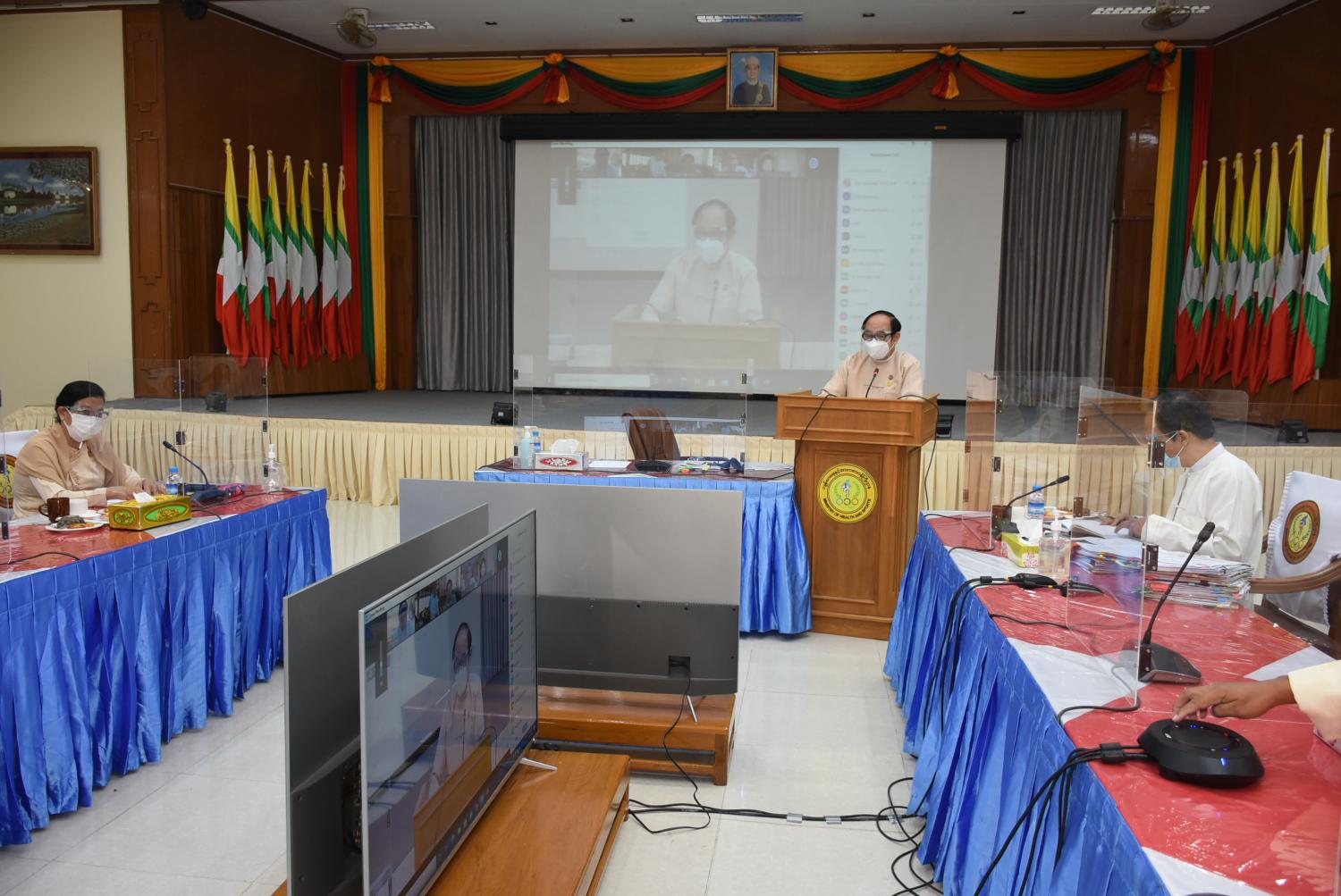ကိုဗစ်-၁၉ ကာကွယ်ဆေး ပေါ်ပေါက် ရရှိပါက စနစ်တကျ ထိုးနှံပေးနိုင်ရေး ကြိုတင် ပြင်ဆင်ထားရှိမှု ဗဟိုအဆင့် အစည်းအဝေးကို နံနက်ပိုင်းတွင် ဗီဒီယိုကွင်ဖရင့်စနစ်ဖြင့် ကျင်းပသည်။