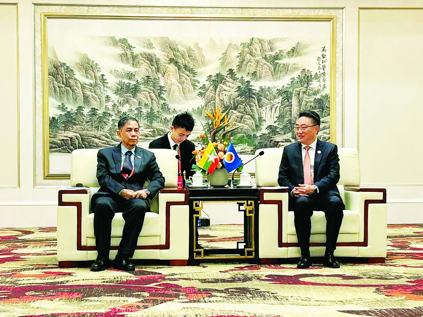 ယင်းနောက် ပြည်ထောင်စုဝန်ကြီးနှင့်အဖွဲ့သည် ကမ္ဘာလုံးဆိုင်ရာစိန်ခေါ်မှုများကို အာဆီယံ-တရုတ် အဖြေရှာမှု၊ နည်းပညာဆန်းသစ်တီထွင်မှုနှင့် ဉာဏ်ရည်တုနည်းပညာ ဒစ်ဂျစ်တယ်စီးပွားရေး ခေါင်းစဉ်များဖြင့် ပြုလုပ်သည့် အဆင့်မြင့်ဆွေးနွေးပွဲများ၊ အာဆီယံ-တရုတ် အဏ္ဏဝါစီးပွားရေးနှင့် ပင်လယ်ရေကြောင်း ပူးပေါင်းဆောင်ရွက်မှုဆိုင်ရာ လူငယ်ဖိုရမ်၊ “Two Countries, Twin Parks” Model ဖြင့် အာဆီယံ-တရုတ် စက်မှုနှင့် ထောက်ပံ့ပို့ဆောင်မှုကွင်းဆက်ပေါင်းစည်းဆက်သွယ်မှုနှင့် စီးပွားရေးလုပ်ငန်းများ ဖလှယ်ရေးဆိုင်ရာအခမ်းအနား၊ အာဆီယံ-တရုတ် စီးပွားရေးနှင့် ကုန်သွယ်ရေးပူးပေါင်းဆောင်ရွက်မှုဆိုင်ရာဖိုရမ်တို့သို့ ပါဝင်တက်ရောက်၍ အမြင်ချင်းဖလှယ်ဆွေးနွေးခဲ့ကြသည်။ ပြည်ထောင်စုဝန်ကြီးသည် ဖူးကျန့်ပြည်နယ် အုပ်ချုပ်ရေးမှူး မစ္စတာ ကျောက်လောင်နှင့် အာဆီယံ-တရုတ်စင်တာအတွင်းရေးမှူးချုပ် မစ္စတာ ရှီကျုံးကျွင့်တို့နှင့် သီးခြားစီတွေ့ဆုံ၍ နှစ်နိုင်ငံချစ်ကြည်ရင်းနှီးမှုနှင့် ပူးပေါင်းဆောင်ရွက်မှုတိုးတက် ရေးဆိုင်ရာကိစ္စရပ်များကို အမြင်ချင်းဖလှယ်ဆွေးနွေးခဲ့ကြသည်။